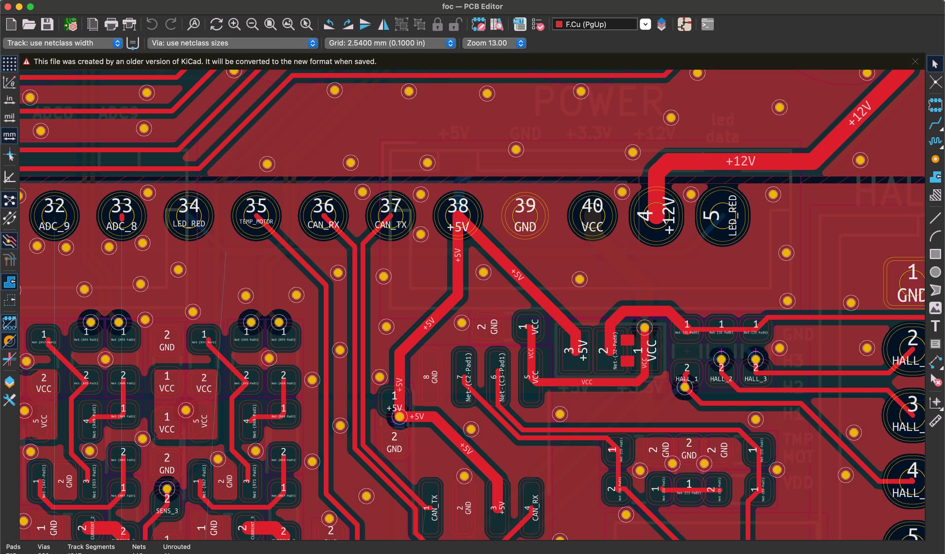 This also means that the 2.54 jst connectors on the top side have to go… So the only remaining jst connectors will be the 6-pin HALL and 2-pin CAN, which both will be at 2.0 mm pitch.