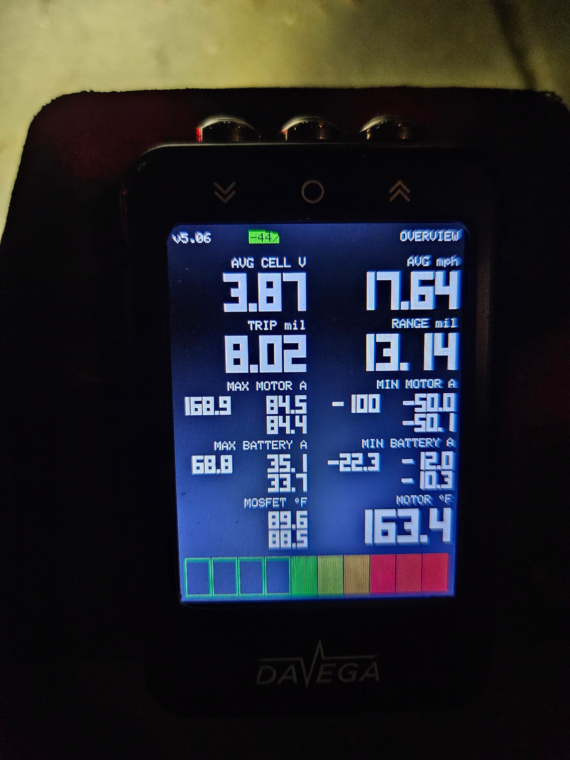 Noticed my board was throttling going fast up hill. I checked the info on Davega and it reached max mosfet heat. Motors are also getting hot. My settings might be a bit high, just trying to get the max out of it.