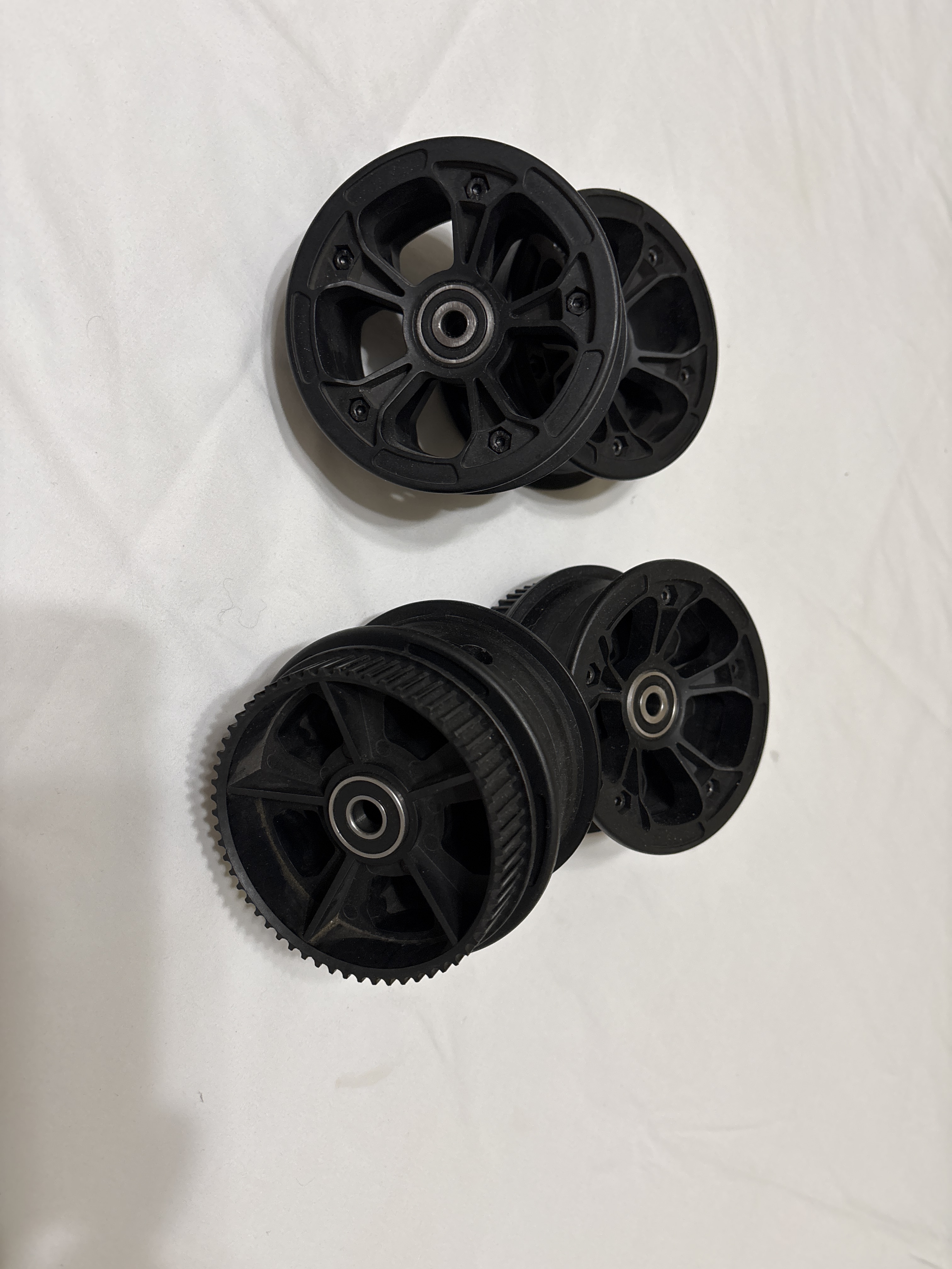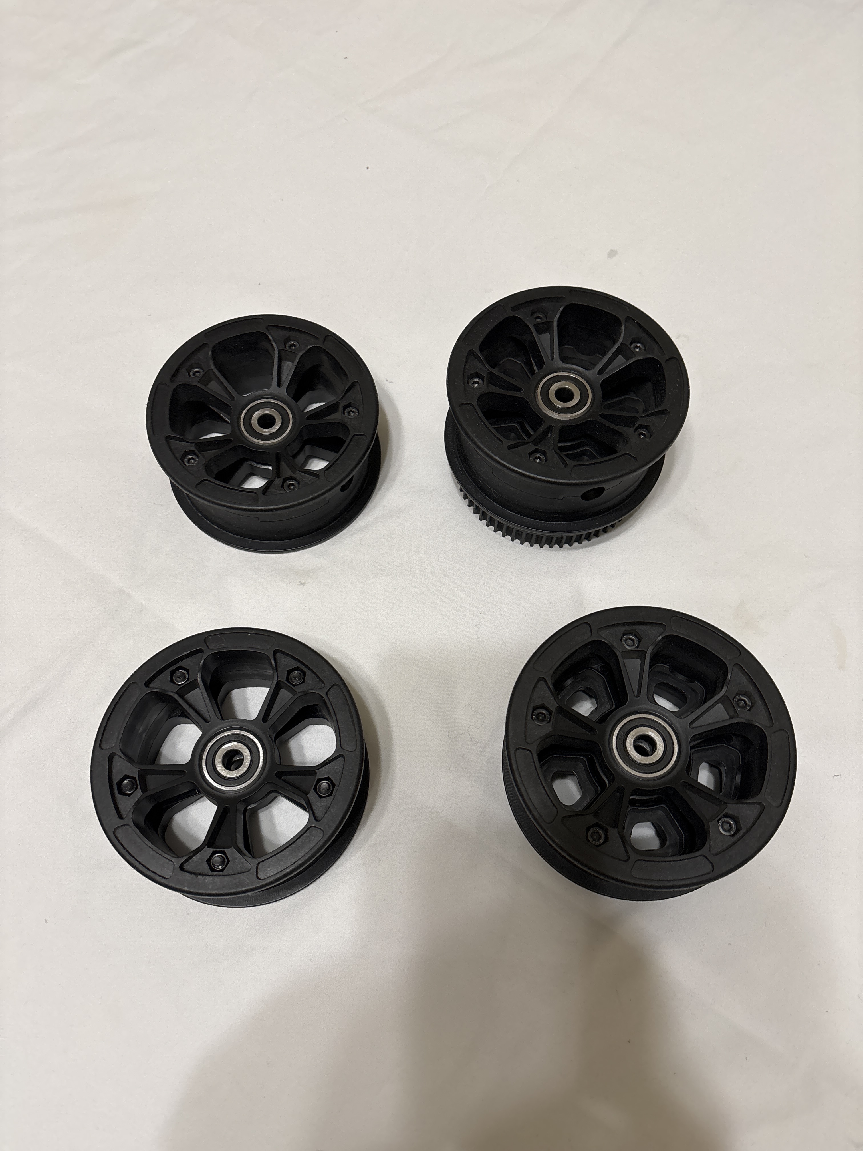 Onsra or Boundmotor ? AT wheels with pulleys . Bearings setup for 8/10 step . Used in good condition. Sold