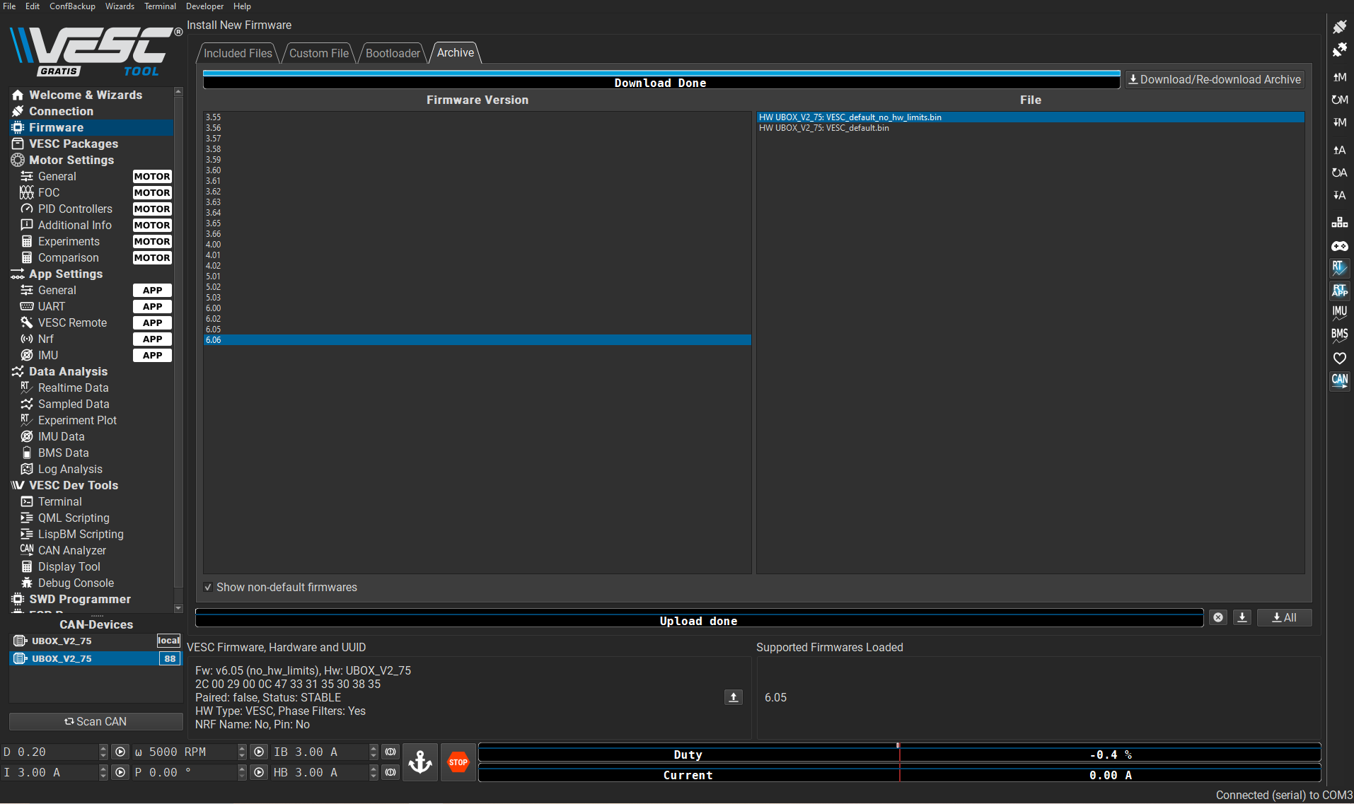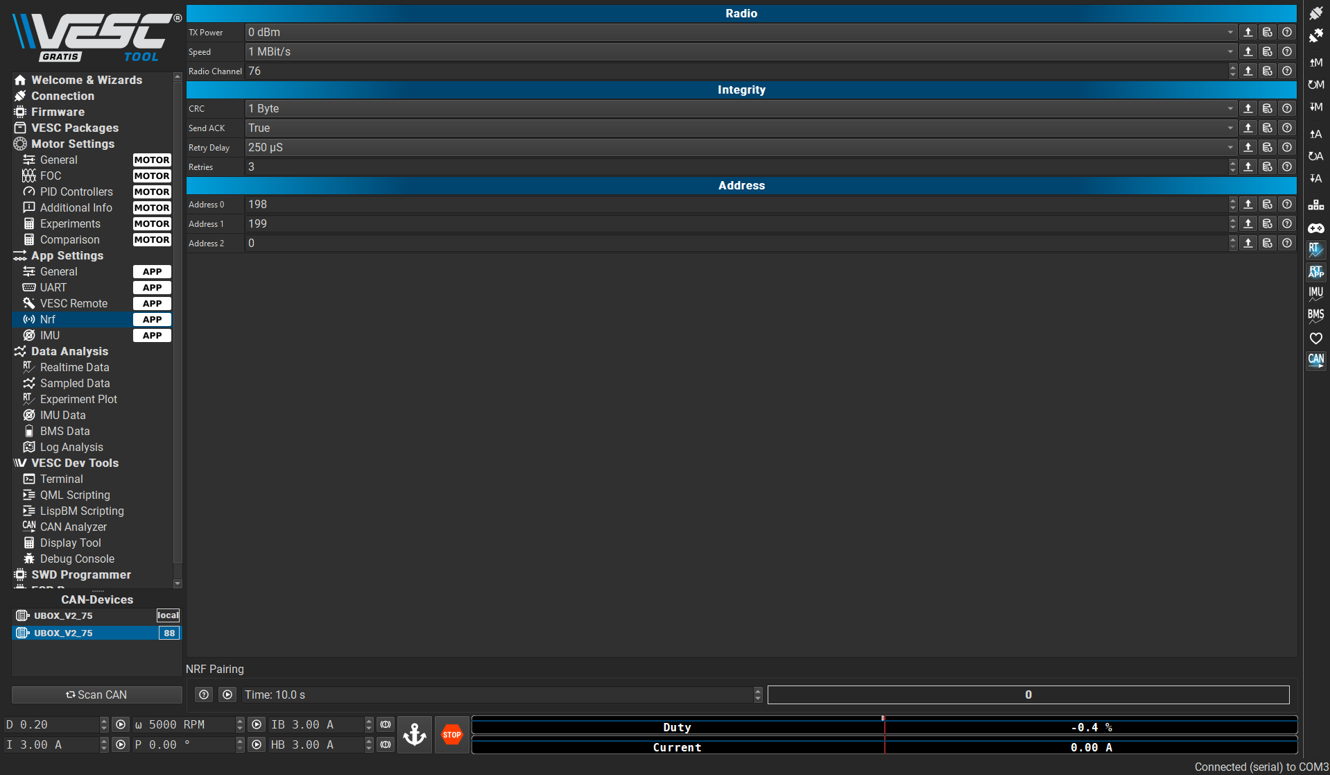 I did a calibration thing in the remote, and tried the options in VESC “setup input” but nothing showed up when I moved the throttle.