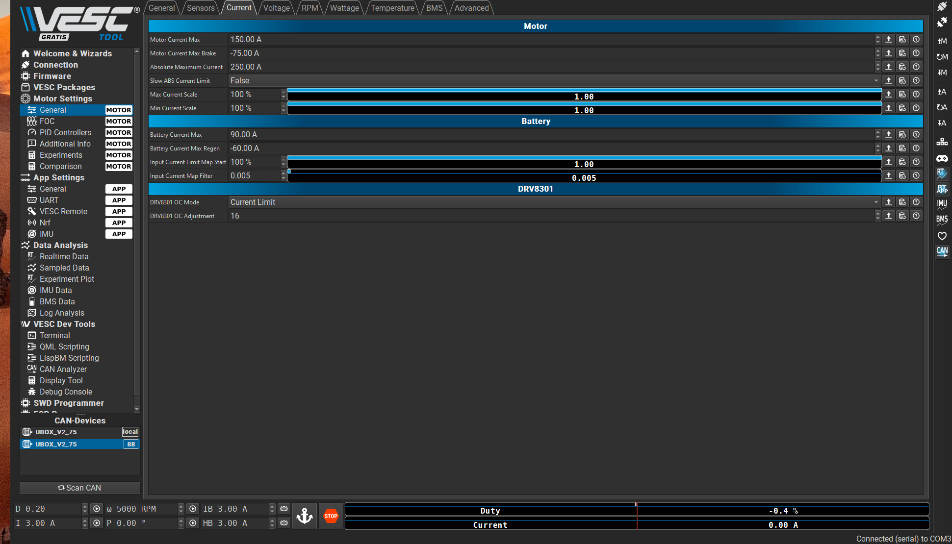 I took this video to see what’s happening more clearly. It takes 1.55 seconds after throttle is maxed for current to reach 100%. It’s not just from the wheels starting to break traction but VESC tool shows ramping over 1.55 seconds.