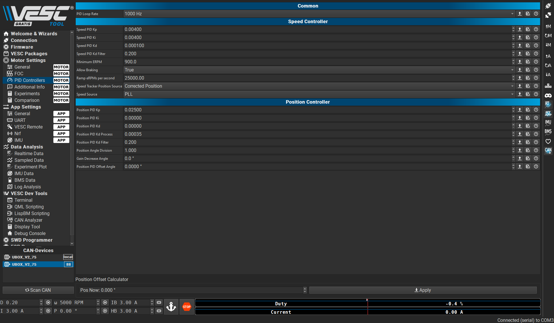 Since when I don’t touch it it stops, and when I full throttle it reaches >98% motor amps I don’t think calibration is related since it looks like it only does position not speed.