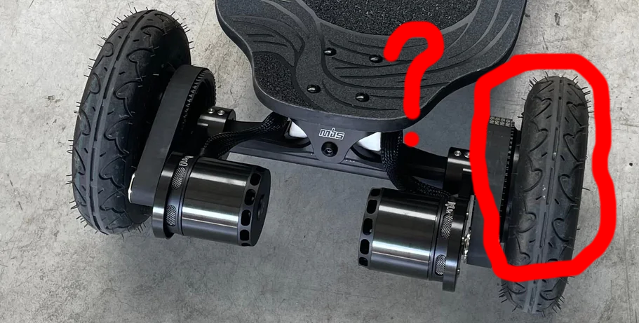 Is the orientation of the left tire in the photo correct?