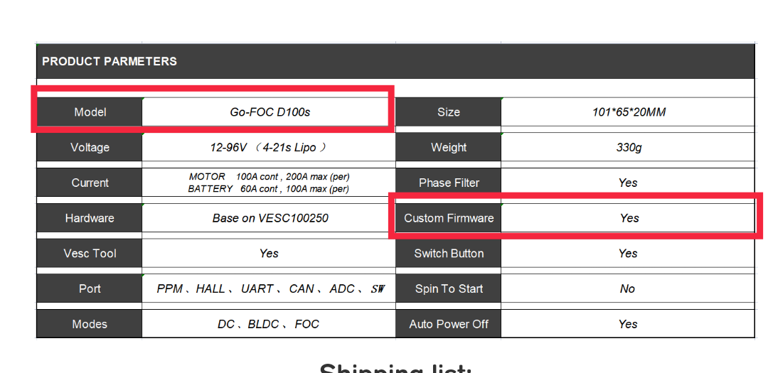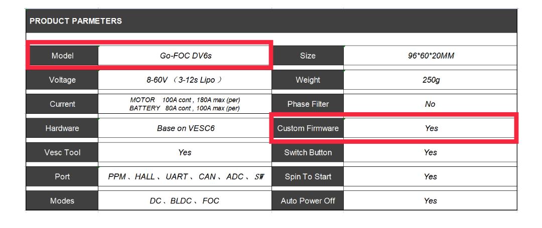 The DV6s have the same firmware as the PROļ¼ base on VESC6, 2 shunts. D100 is based on 100250 firmware, also 2 parallel shunts. Both added button switches.