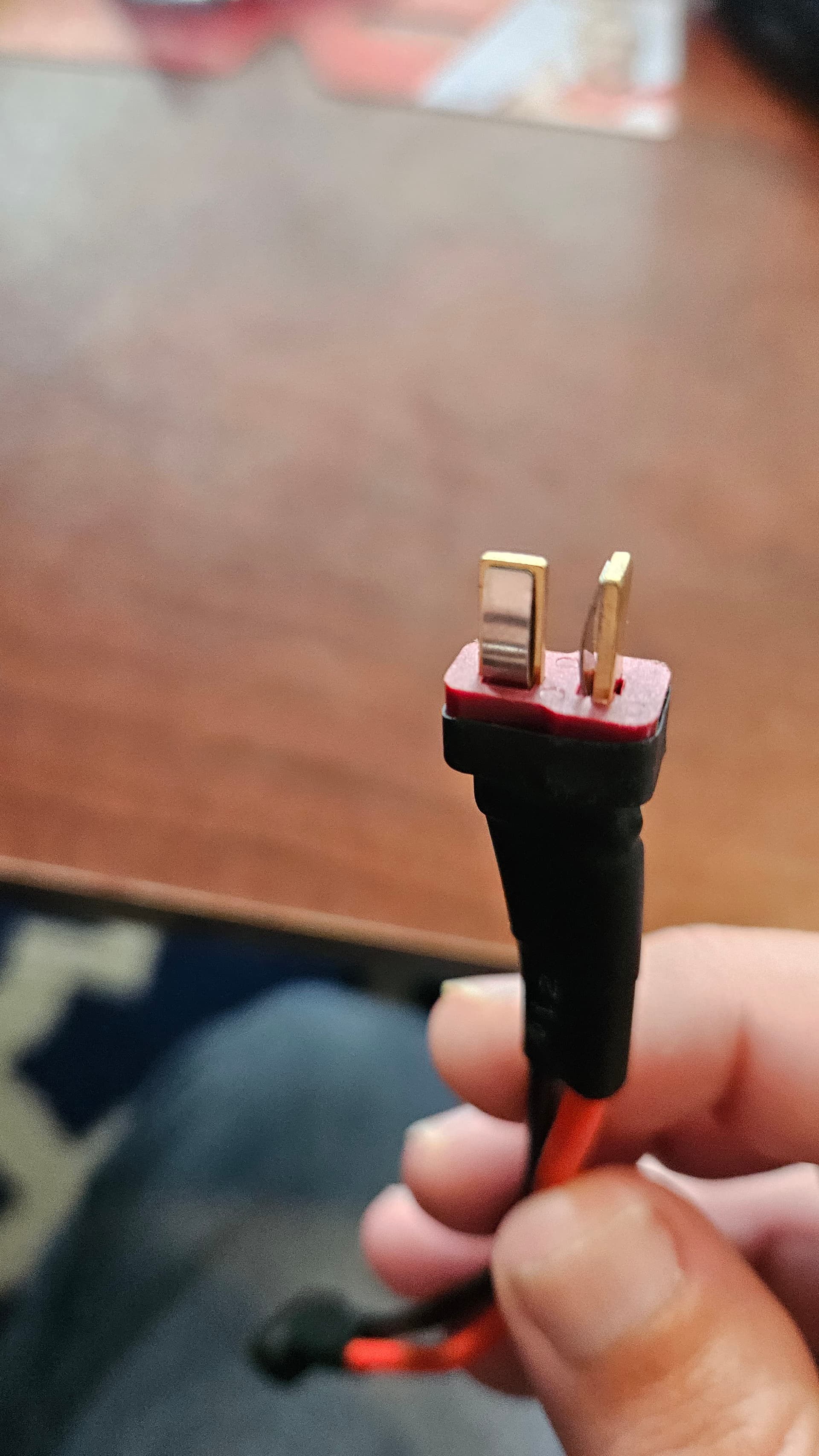 This adapter was between the battery (t connector end) and the first xt60 you are zoomed in on which goes into the first controller. There is a switch on the controllers that is currently routed up the post to a controller on the handle bar. The sizzle happened on the xt60s. Both of them are equally charred now. Battery still seems ok and is showing ~38volts.