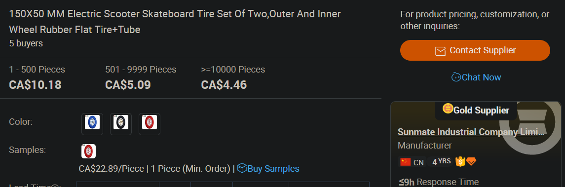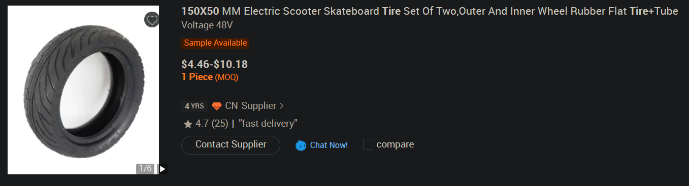 That link is a mobile link so I search again for āsunmate 150x50 tireā and I see the same tire for $10.18 at a MOQ of 1: