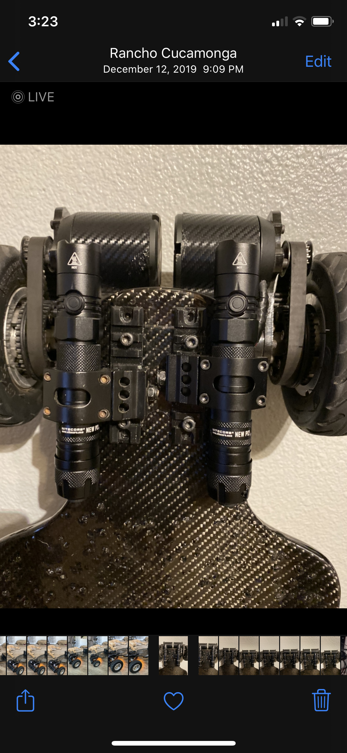 Why not just use gun rail mounts ? I love mine, they are incredible strong. I have rolled my board multiple times and never bent or broke a mount. And You can use almost any light you want and if you do it like I did you won’t have to drill any new holes into the deck to mount them. Both of these flashlights are 1500 lumens each for 3 hours and 45 mins on 1 20700 size liion. Here’s some pictures