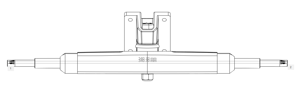 Tyre to Tyre with bergs installed are 360mm edge to edge