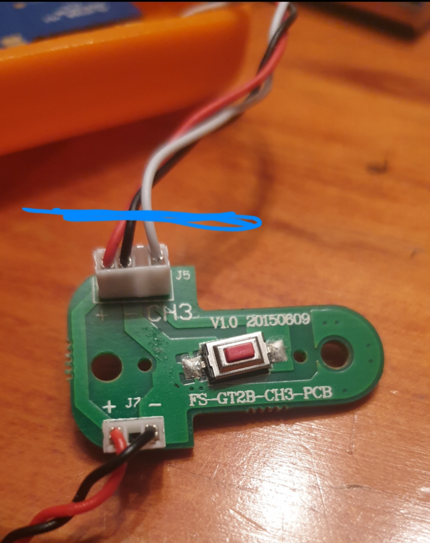The three wires now hanging from the main pcb is your battery pos (red), battery neg (black) and signal (white) for your switch.