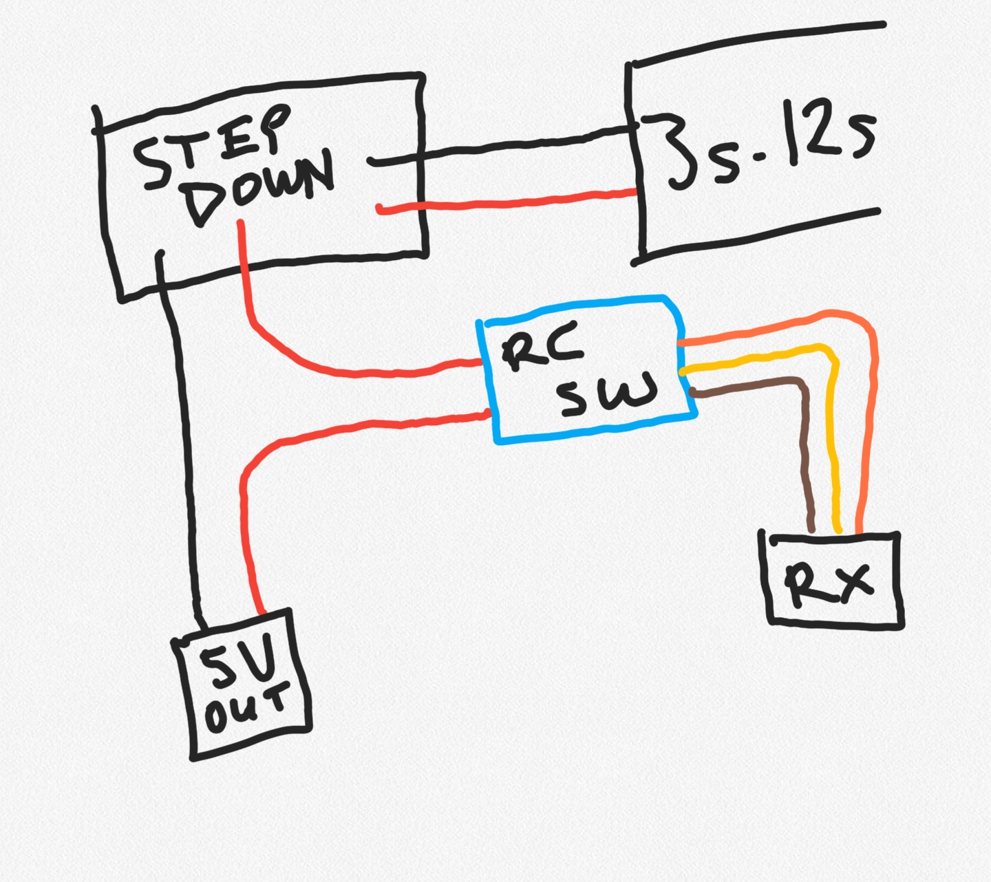 - The rc switch can only take 30v 10a so it can only switch the output of a step down (this step down draws no idle current. yes i checked with my multimeter)