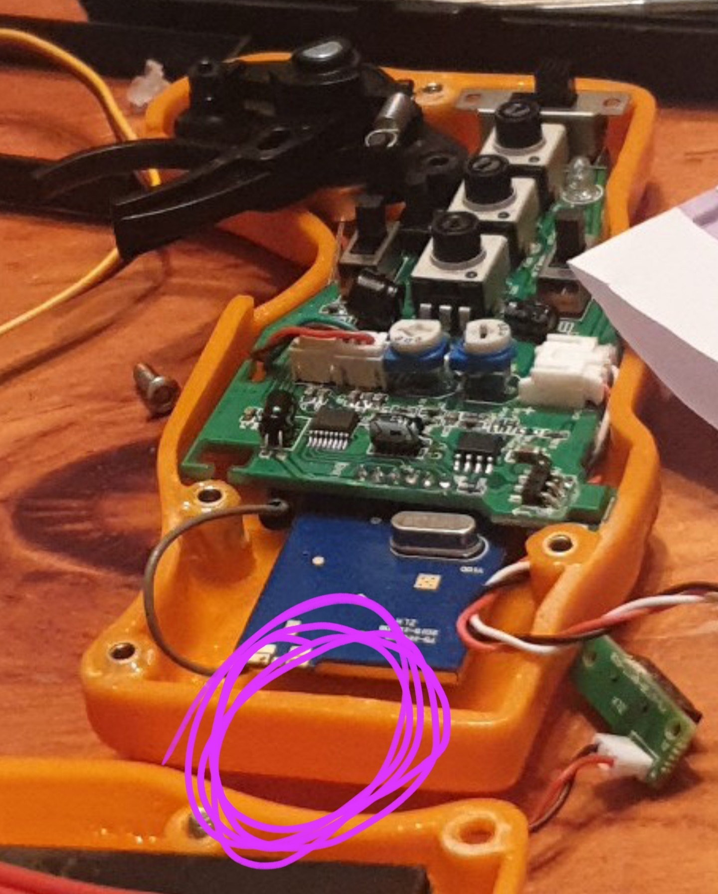 Once you have the remote working, choose a point in the remote in which your small switch will have room to sit. in my case, here: