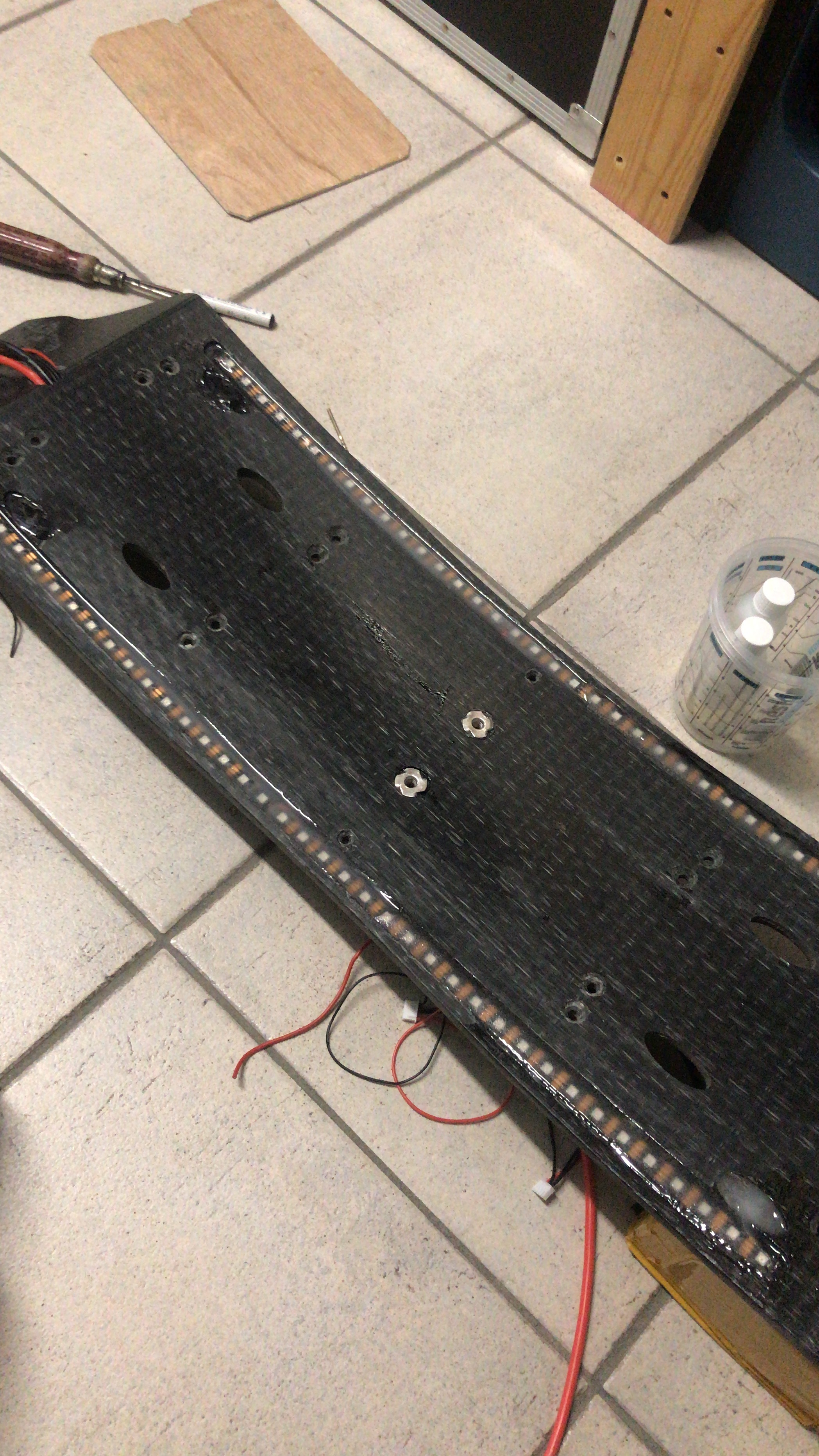 CF skin to bottom of deck and epoxy in wire void and fabric skin to top. Glass frit.