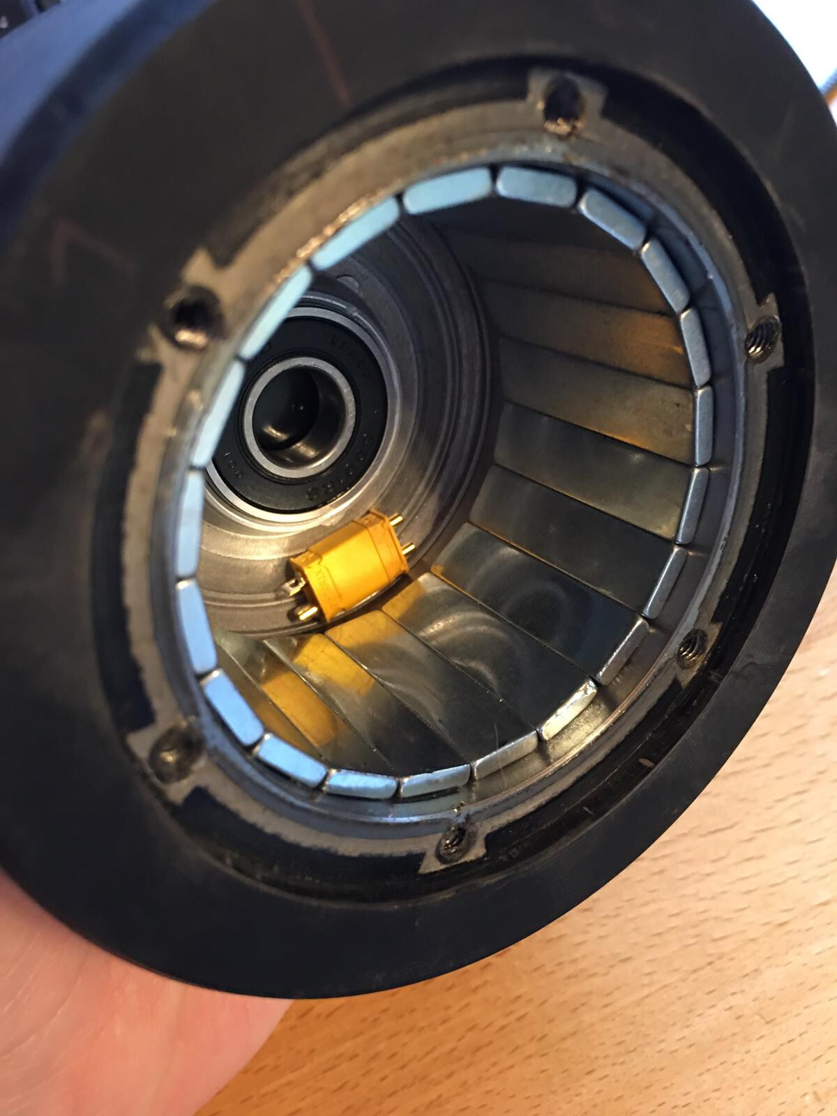 I still want to balance the hubs so I took them apart just to take a look. It seems like they have empty space at the end of the Hub motor to fit the bearing.