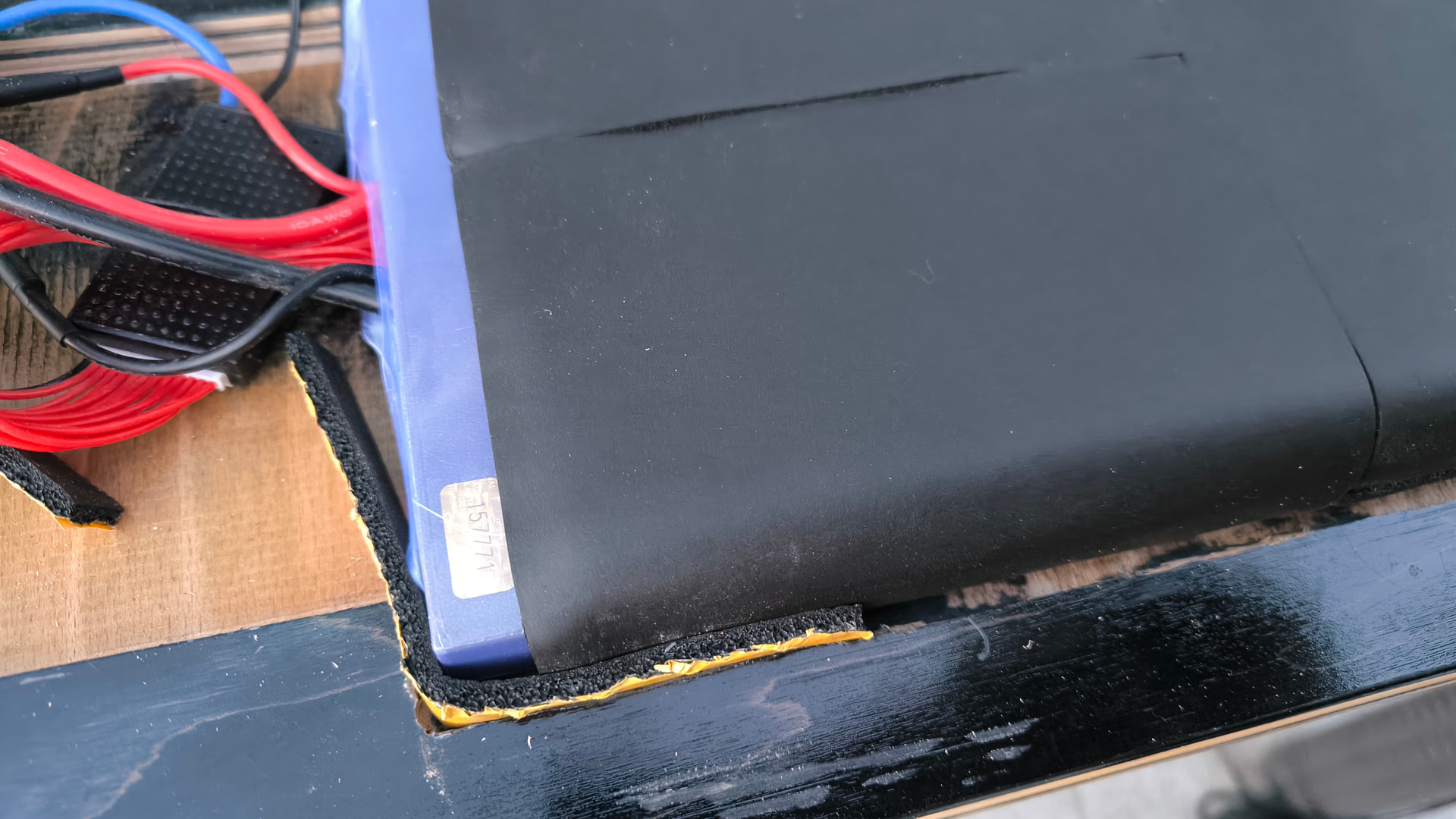 Since the build is on a tight Budget and i’m unemployed, the battery enclosure ist a diy Out of a thick rubber mat, which will BE Held together by Aluminium frames.