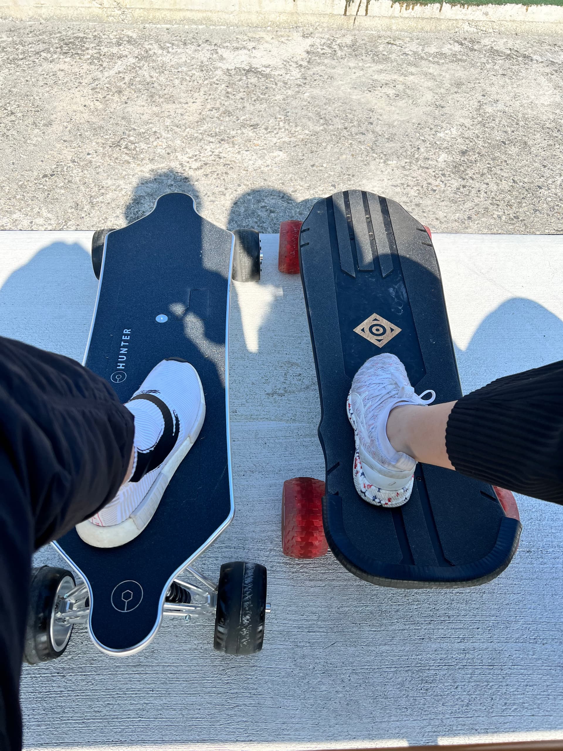 Took an afternoon off with my wife and went skateboarding. Me testing the hunter board for the first time and her trying to eskate for the first time