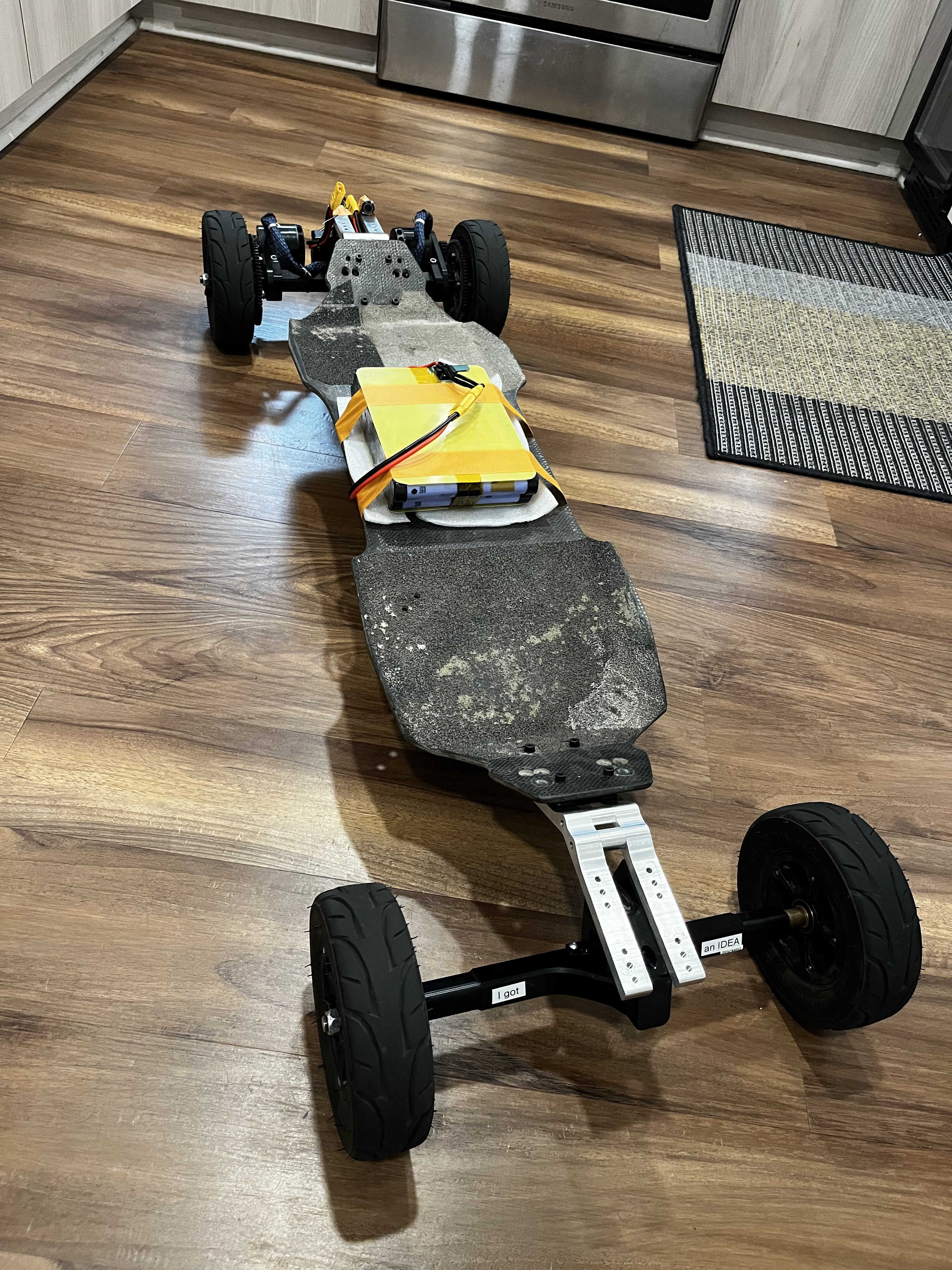 Because I want to experiment with different decks, for shits and giggles, everything needs to be mounted to the trucks. Should make swapping decks, adding wedge plates and/or changing IDEA bracket orientation easy.