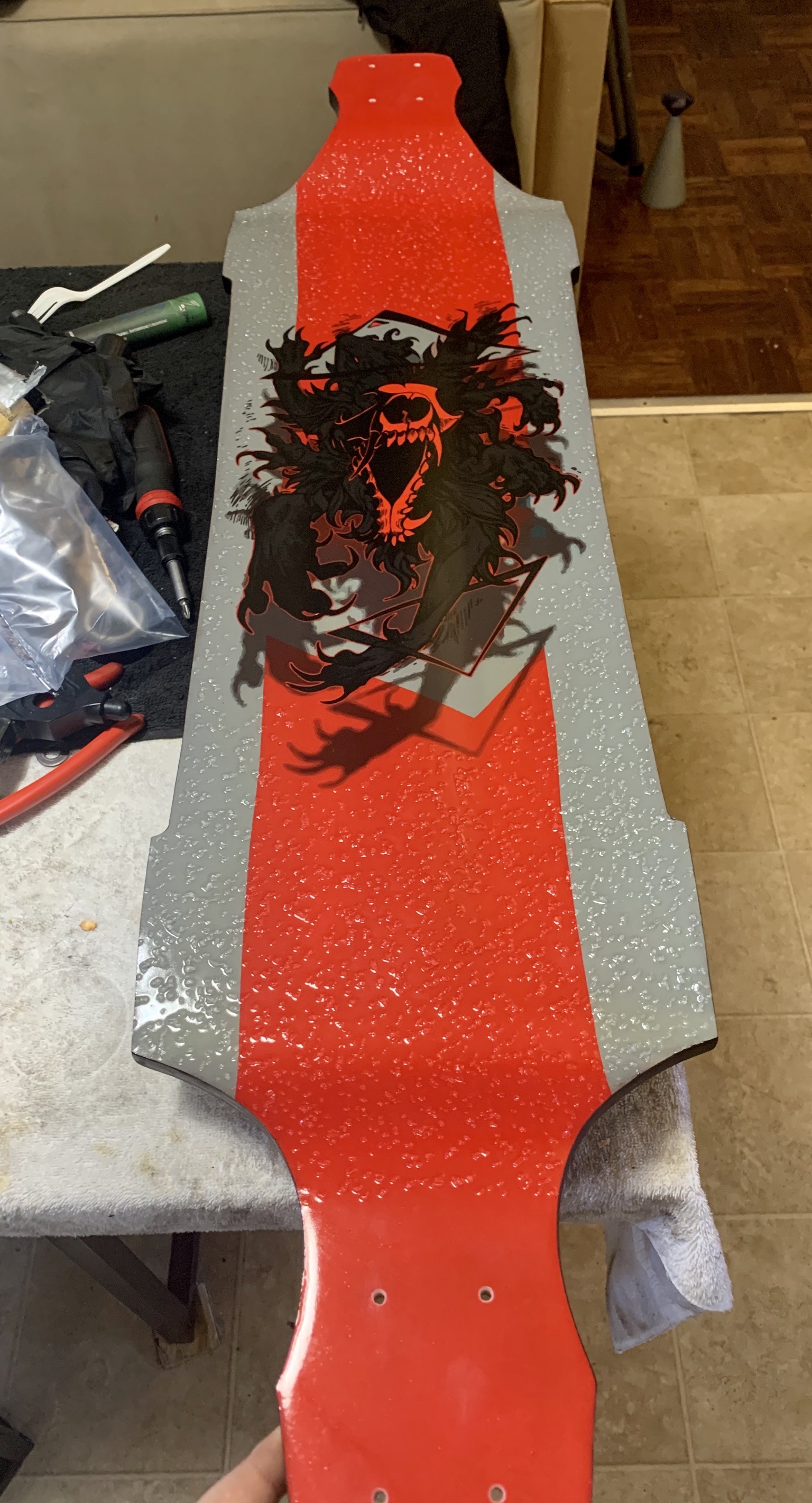 Big soft rubber risers make trucks “walk” under power.