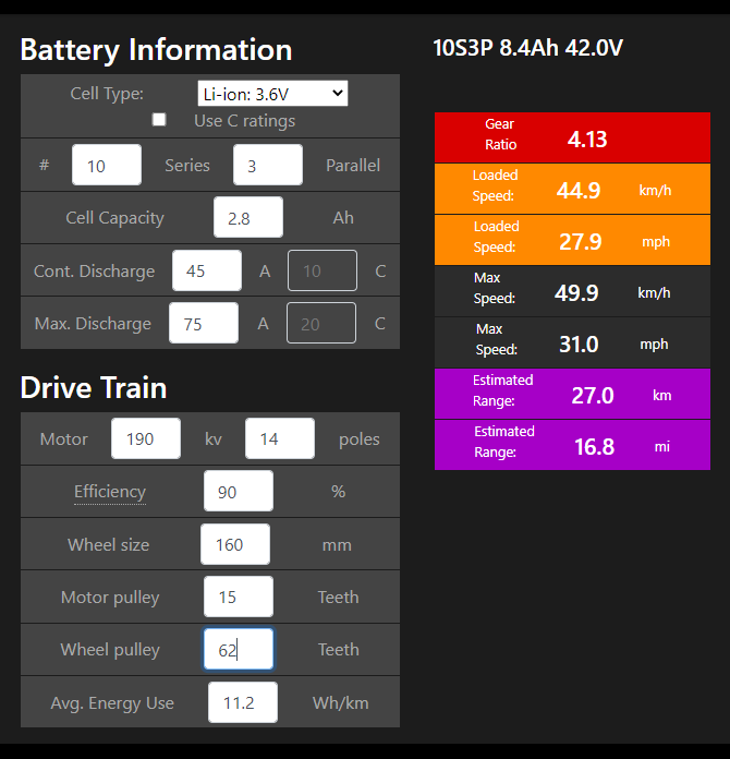 3mph faster is closer to what i expected, but somehow my original calc put the pulley at 55t, which made me excited to brag about “32mph” but honestly I can really care less, I cruise at 13-15. I was fine with a 12a esc and I dont need to be bragging about life threatening speeds