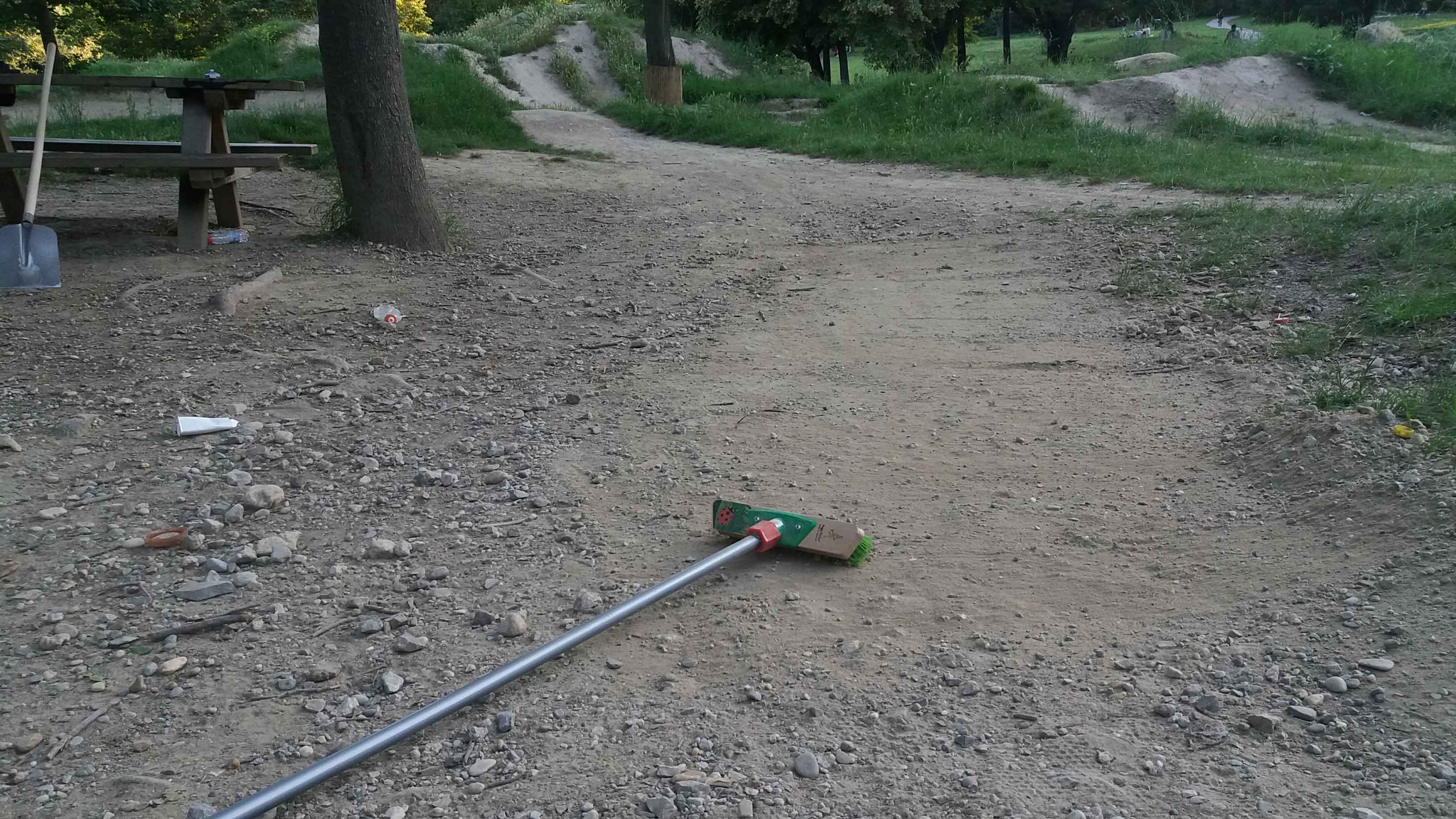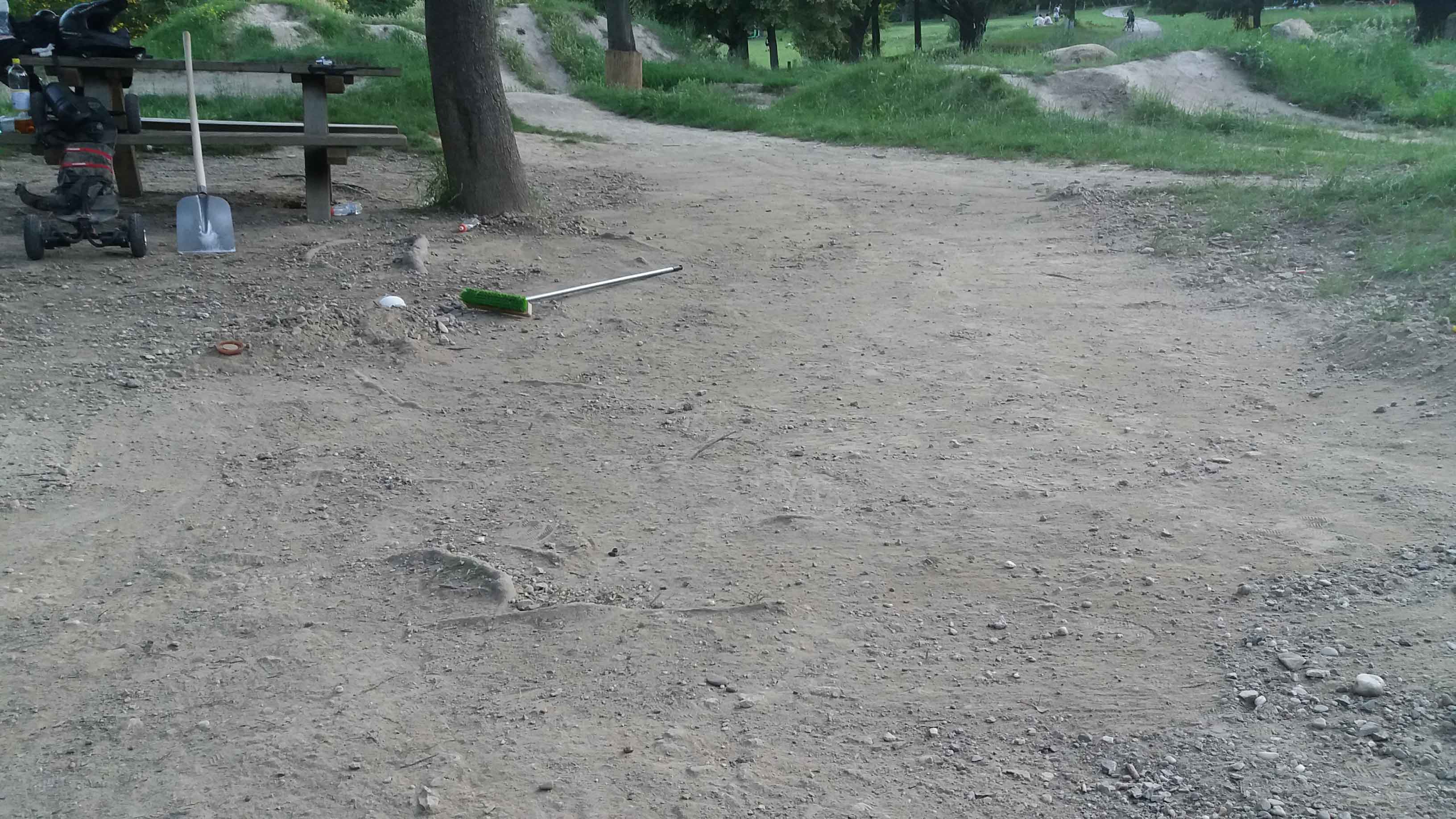 This broom is the shit! I mean it’s still hard work but quite fast. It is exactly made to sweep stones and works really perfect. Then it was time to finally ride and jump.