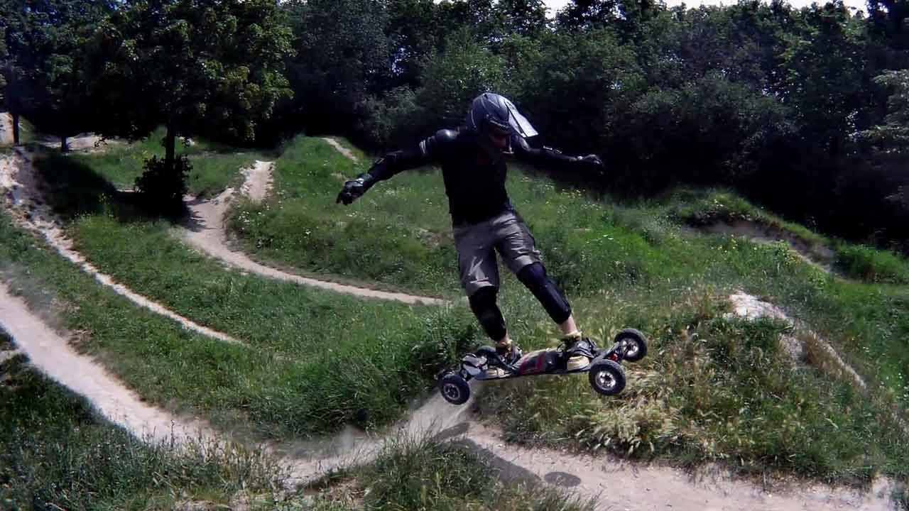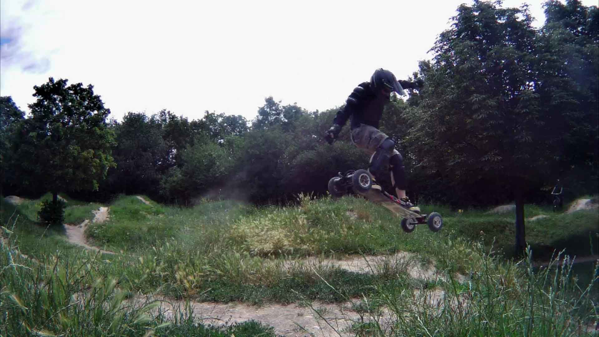 For example it is impossible to ride the single trail in dirt park with the Bro, the curves are too tight. With the Trampa it is also quite challenging but possible. With the stiff DWII deck it is really easy. Here a video from last year so you know what I’m talking about.