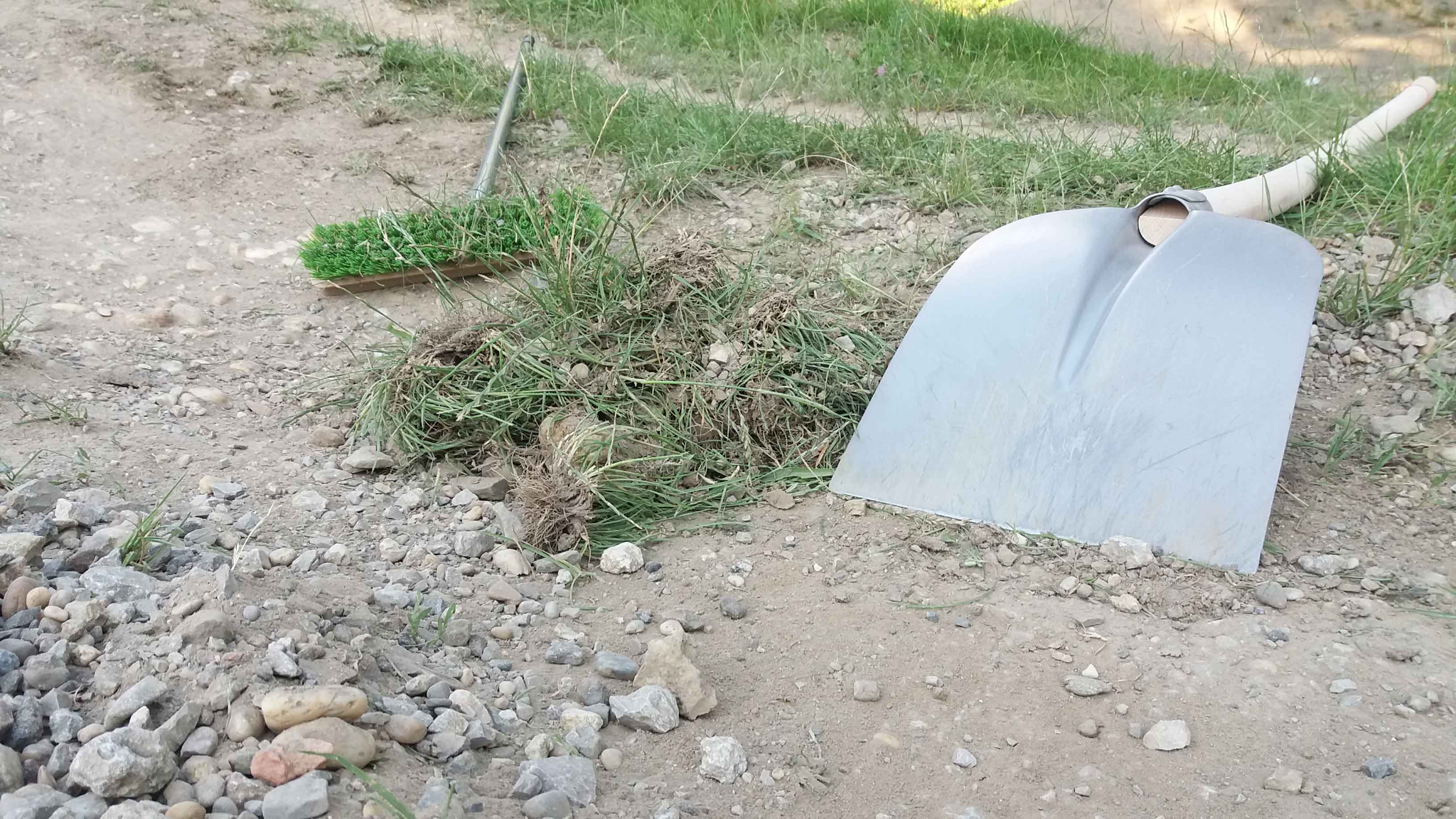 I started to work on the roll-in first and removed the grass, some dirt and bigger stones