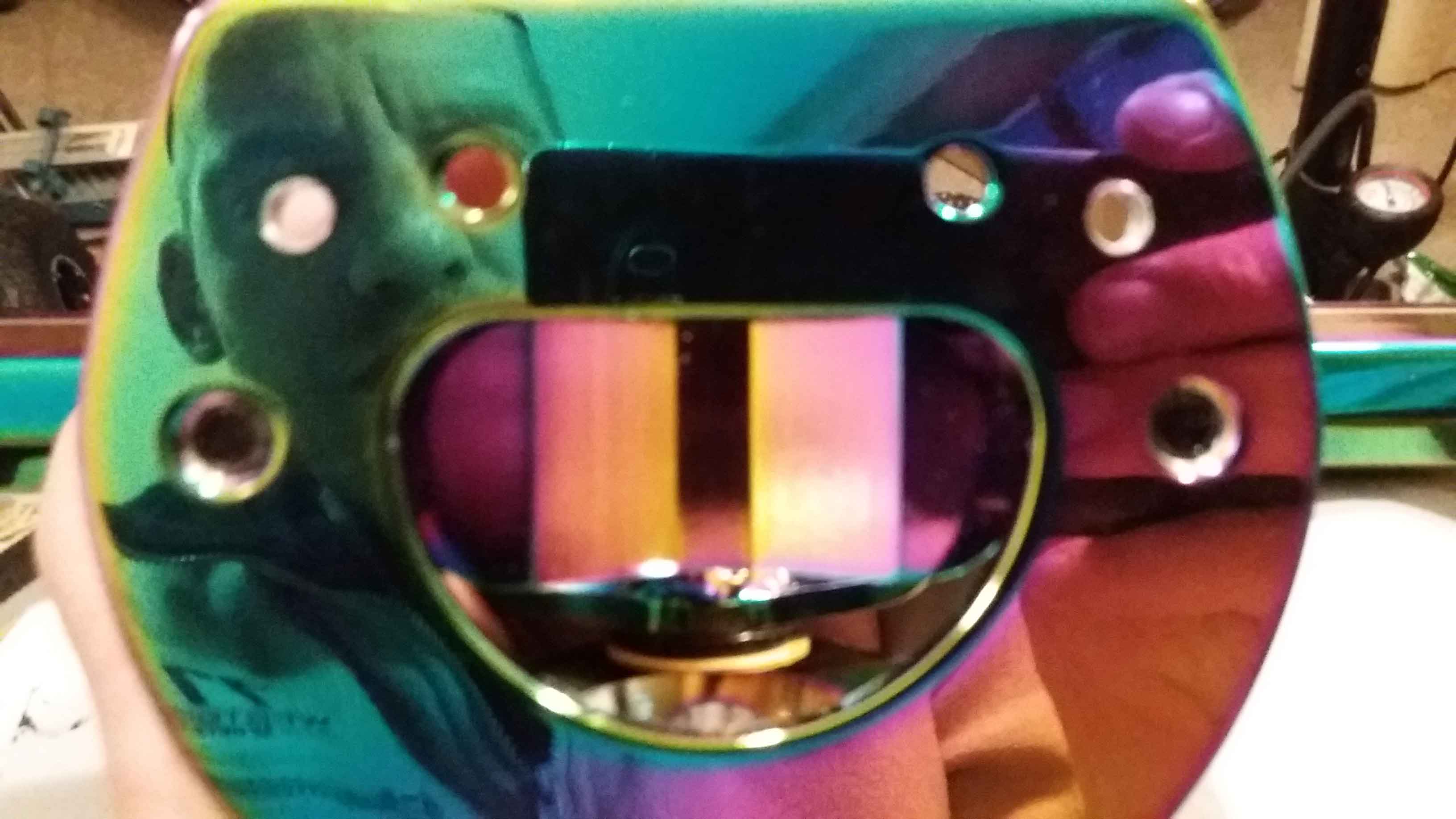During taking pics I realized how shiny this surface is and how difficult not be visible. Ok here some oil-slick selfies ![]()