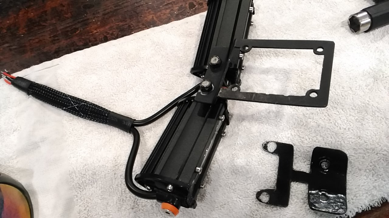 For this particular build instead using just one bar, I found that I could use two of them, side by side, doubling the lighting power, but all this by using the entire board width from edge to edge. Then I decided to hang them on a V position using a bracket which I custom built out of a steel plate that I cut and grinded down. By doing this I avoided the front wheels and the truck so they cannot block the light beams.