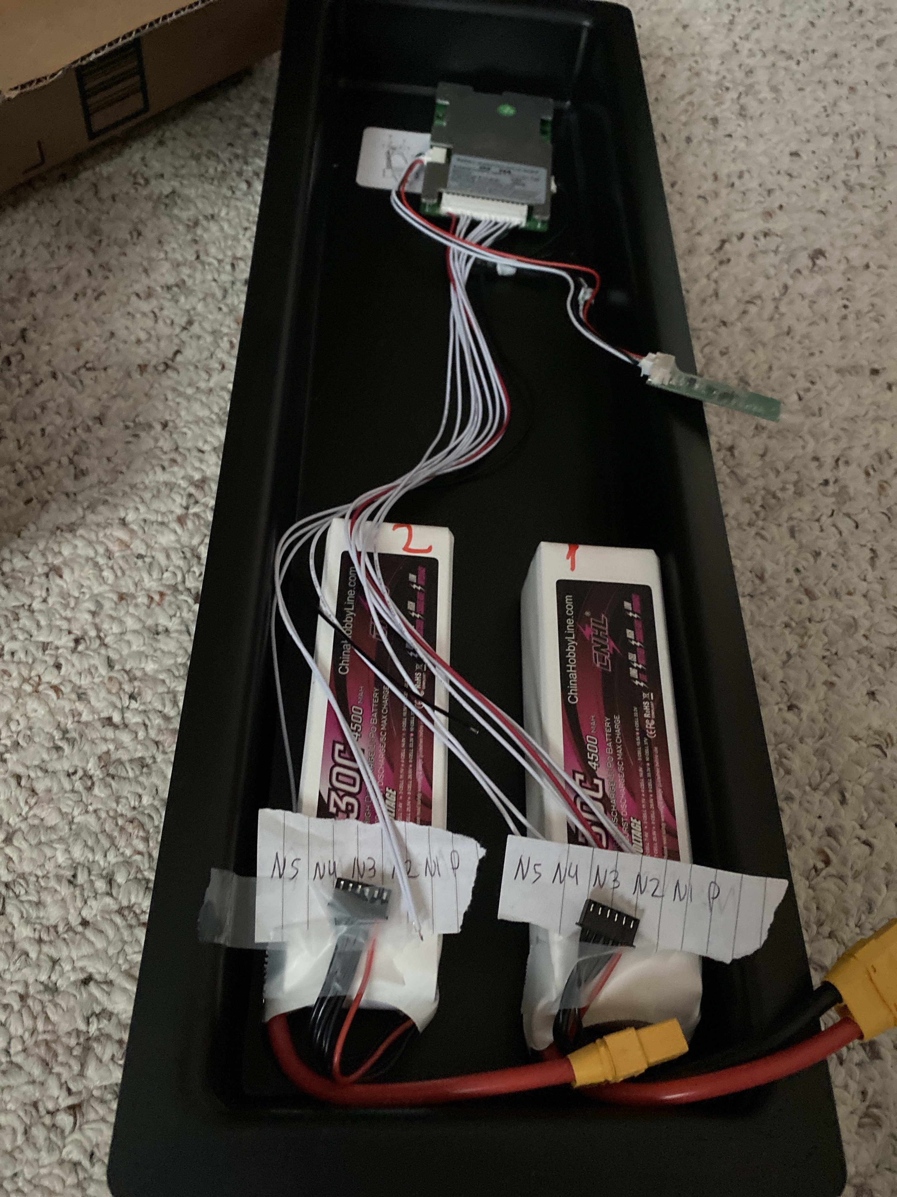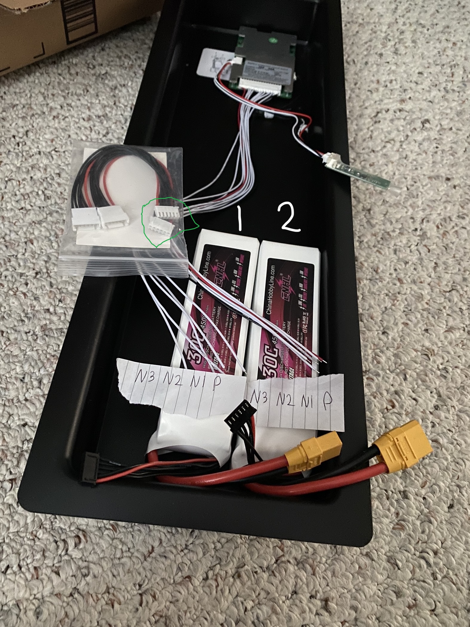 Can’t get the stupid balance wires to stay put but I got it where the red balance wire is on the right