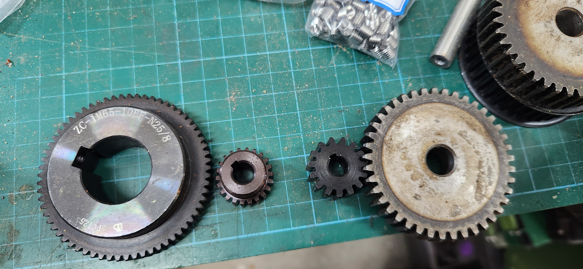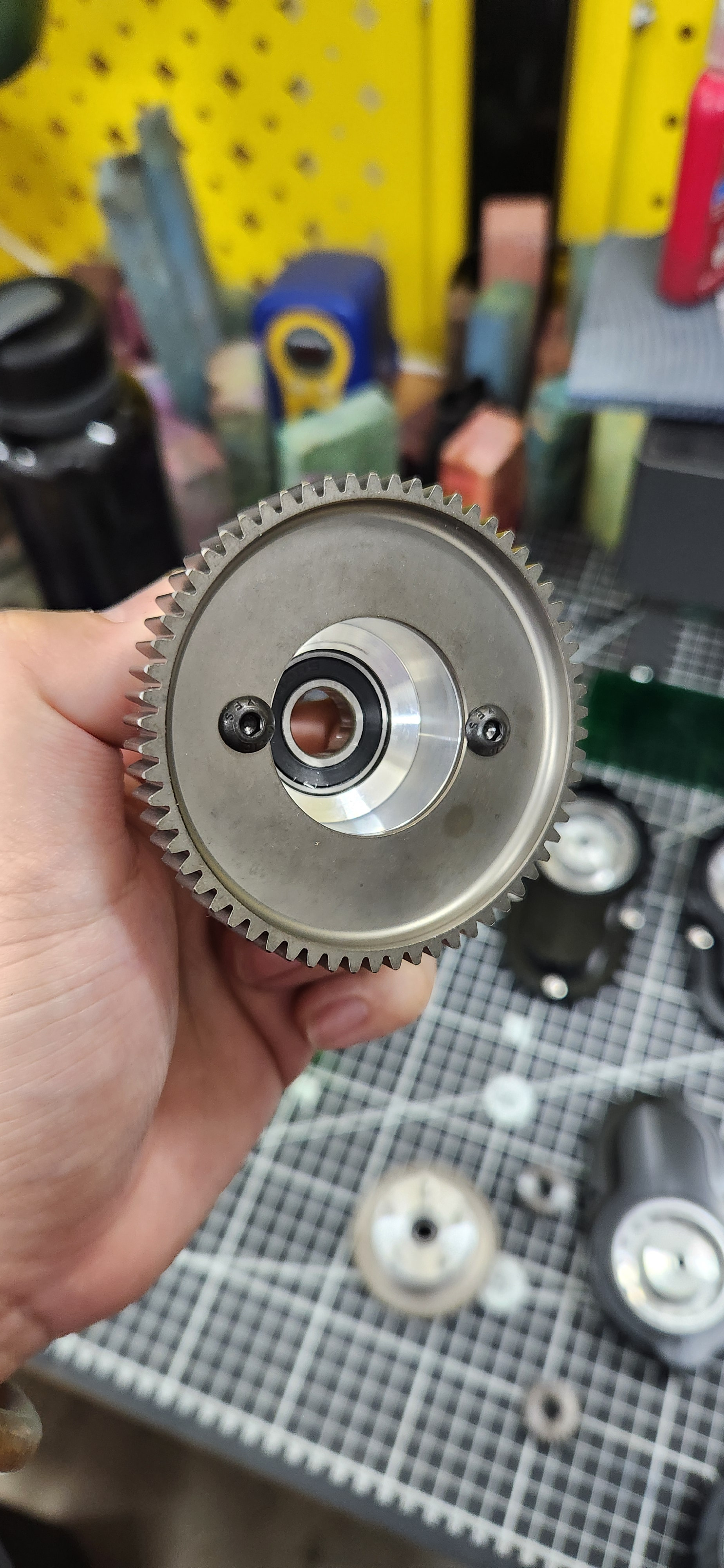 As for the gears, i found some gears on Taobao that are similarly sized, but will need some machining to get them down to dimension. Diameters are about the same, 24mm in OD for the motor gear, and 65mm for the wheel gear. They are 1.5 mod pitch however. I will post more when they are here. First I need to buy a chuck for my rotary table to machine the kegel adapter..