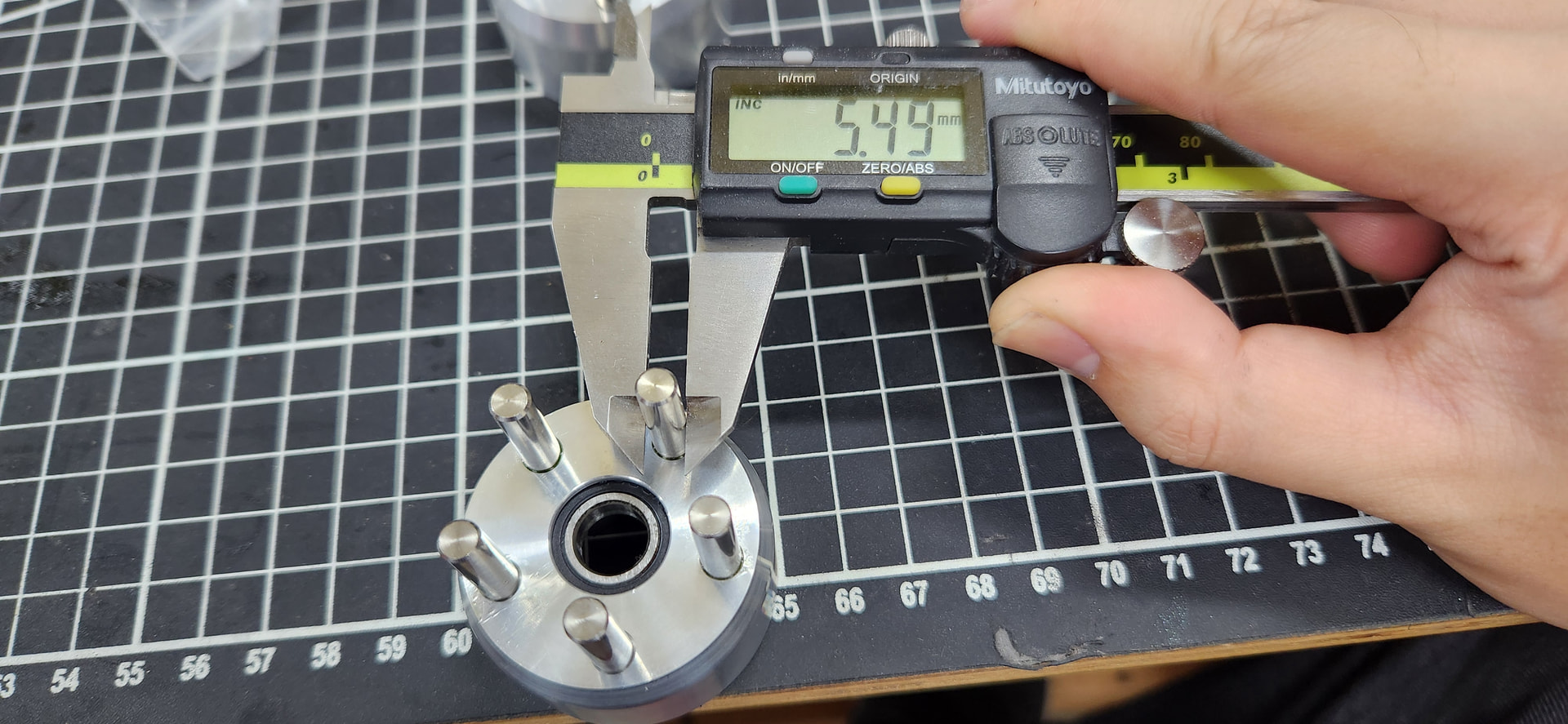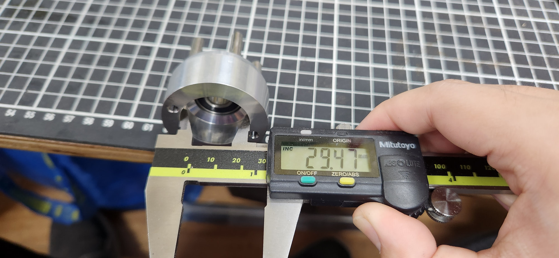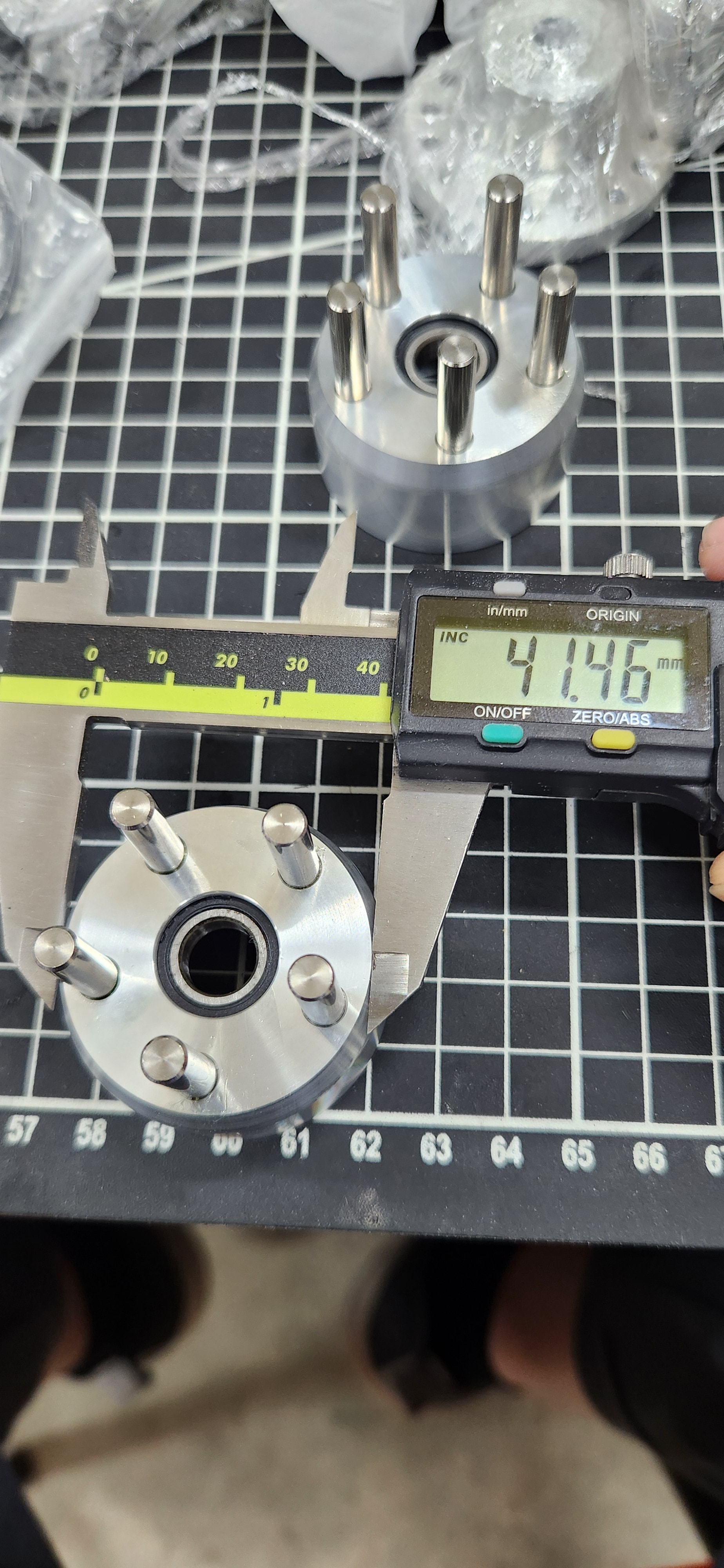 I took measurements of the existing kegel adapter. It’s mostly a round shape with a slot for the 608 bearing to slip into. 5 holes drilled in the kegel pattern, and if i remember right they were pressed in with retaining compound. I would like to change that and maybe make mine with the ends threaded in instead, and use red loctite.