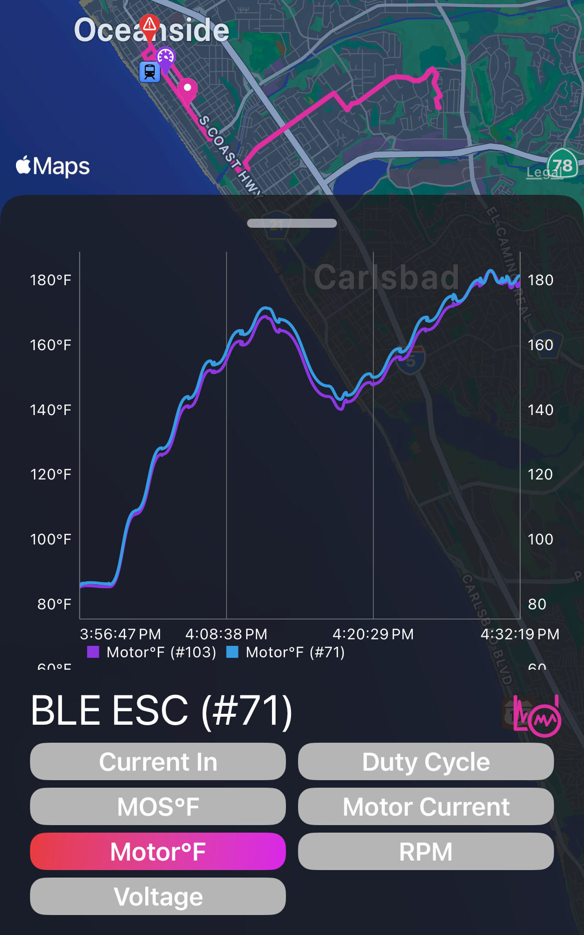 Only one setback so far and that was on the first test ride I was running to the store which is only about 1500ft from my place. Decidedly it was not a great idea bc I didn’t double check my motor current and brake current and it turns out it was up at 120a and -120a so I grabbed some brake after zooming in the parking lot and it locked it up at about 25mph.