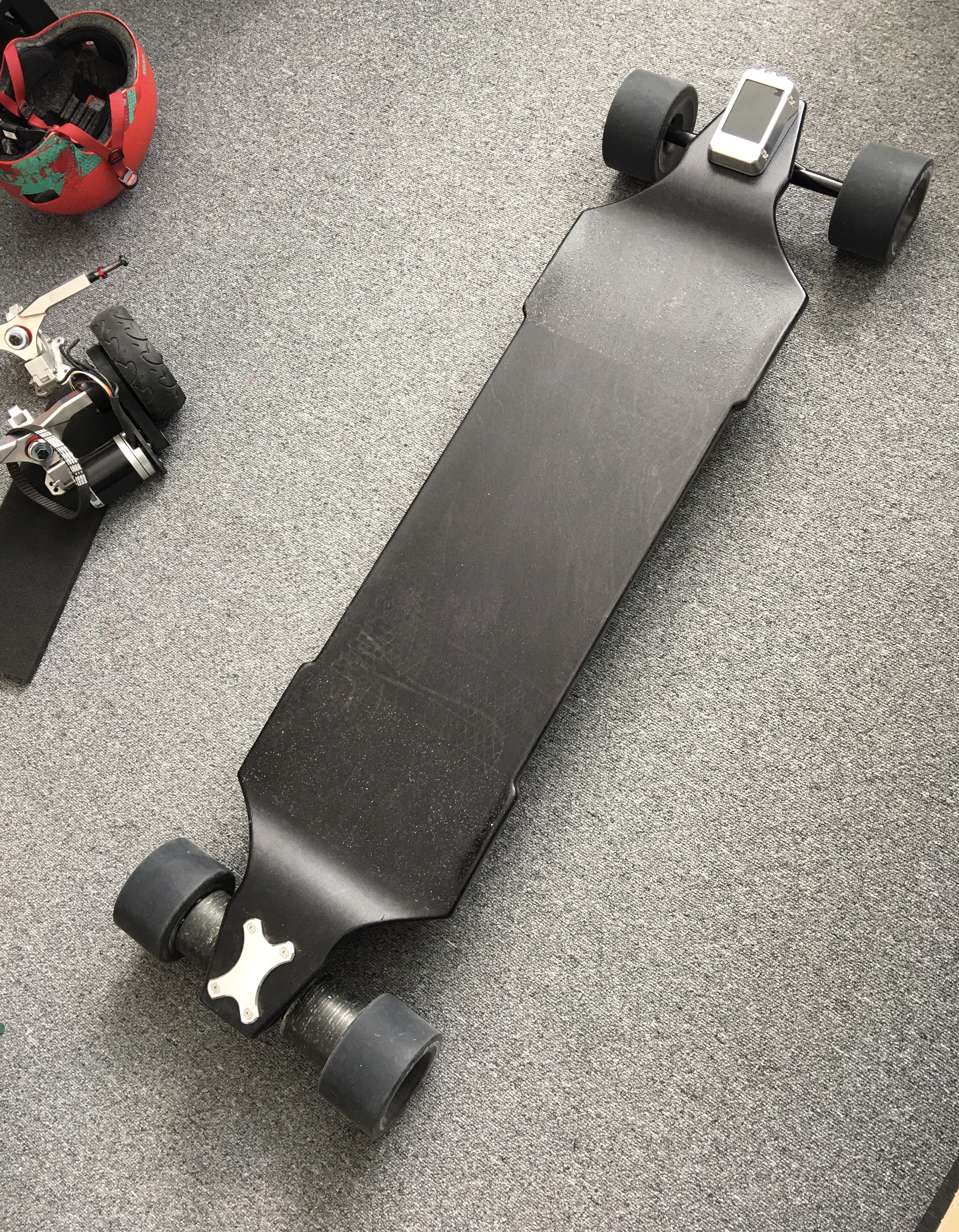 Some pics of the finished board. I’ll be testing RKP trucks with a belt drive soon (you can see it in the background on one the picture below).