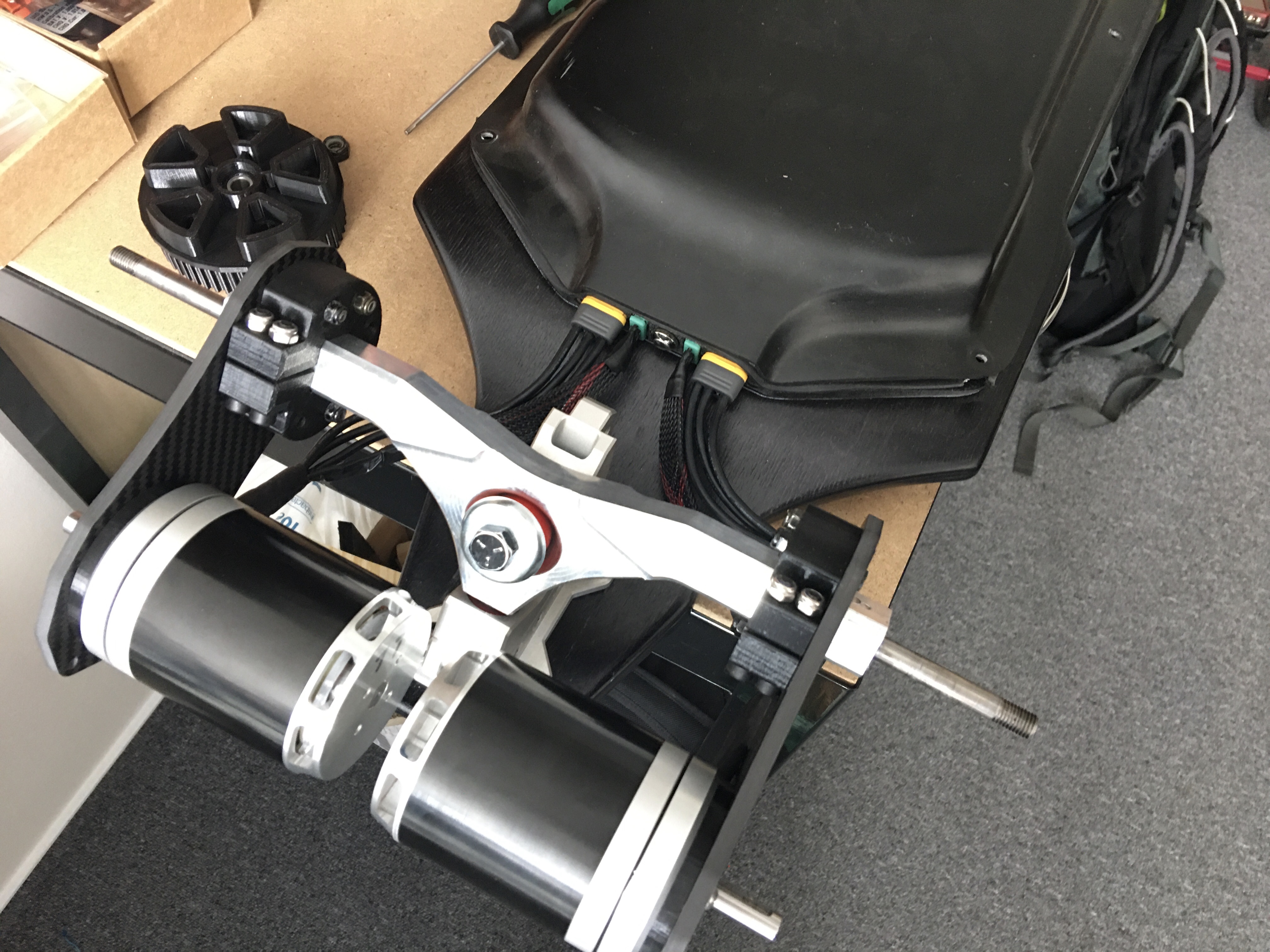 Testing a different drive. It was a lot of modelling and 3D printing to make it work. Clamps for the mounts; spacers between the mounts and motor cans. I also needed to customize a model for Evolve pulleys that I found on thingiverse to make them fit the axle. But, finally, everything fits and seems to be working well. I just need correct pivot cups for the trucks, which @Lobap promised to send me but he’s been MIA ever since.