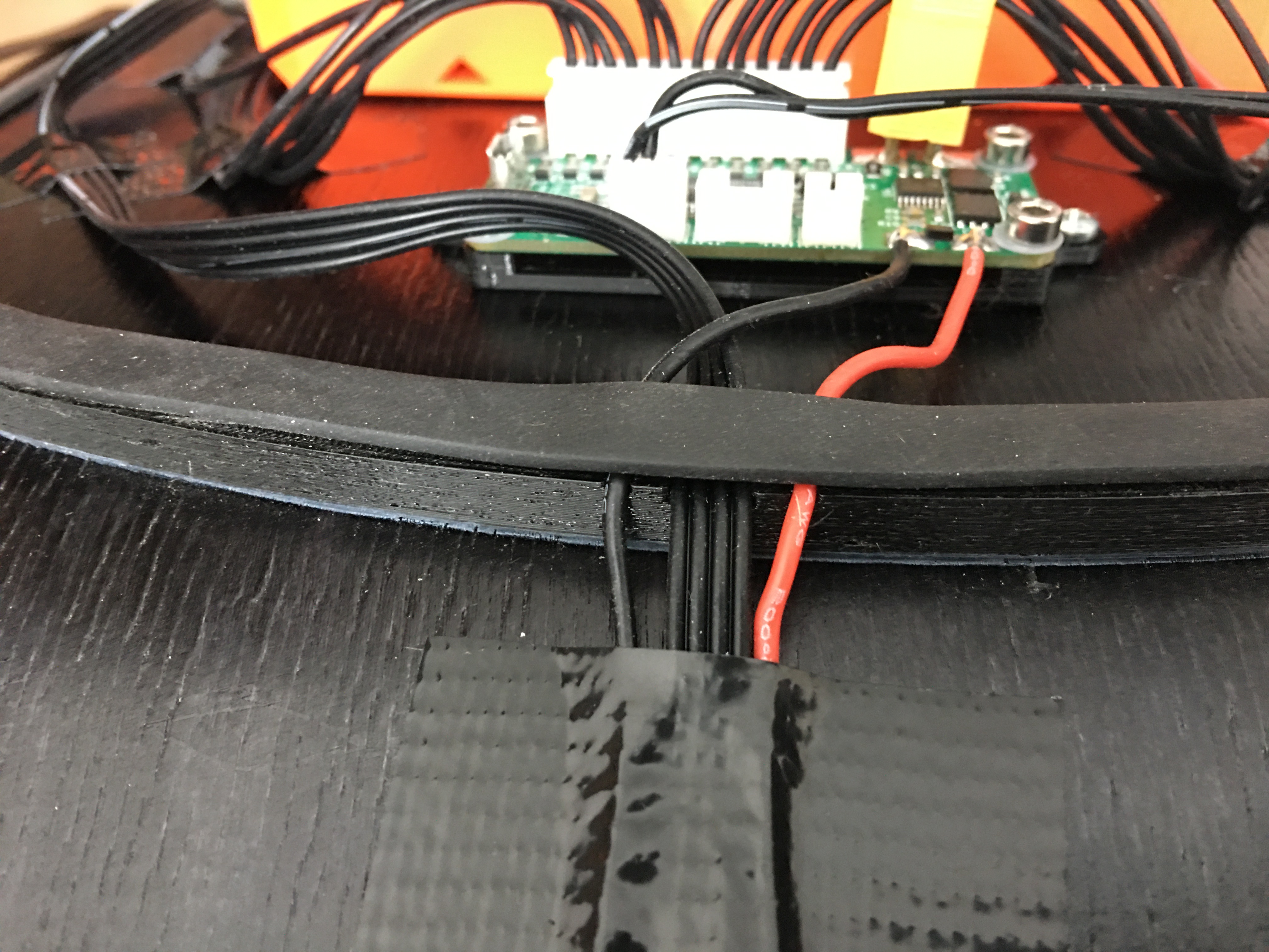 Here’s how the cable are routed through the front filler part. (I know I said “no tape”. I’ll better myself.