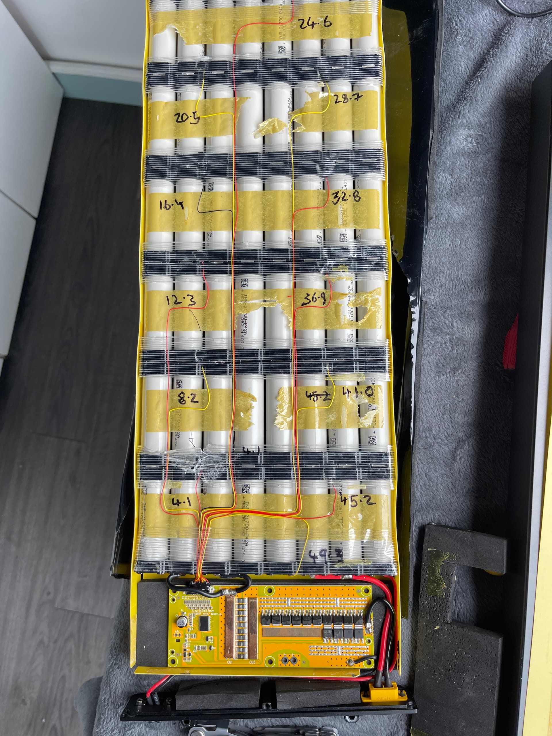 Hi, my Hurricane battery is at 47,1V fully charged (autonomy is reduced to somewhat 40/50%, board is charging in 1h instead of 2h30). It’s from the first batches (board 1376) but has less than 1000 miles/50 recharge cycles put on it, I’m