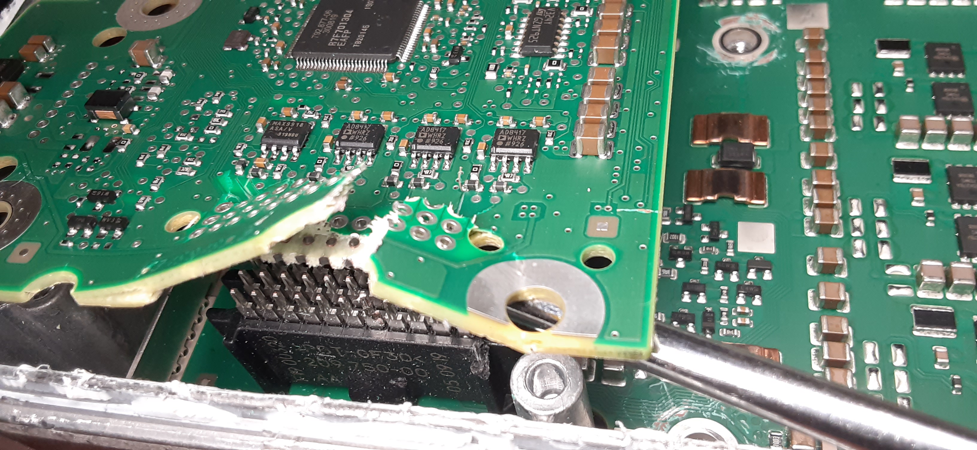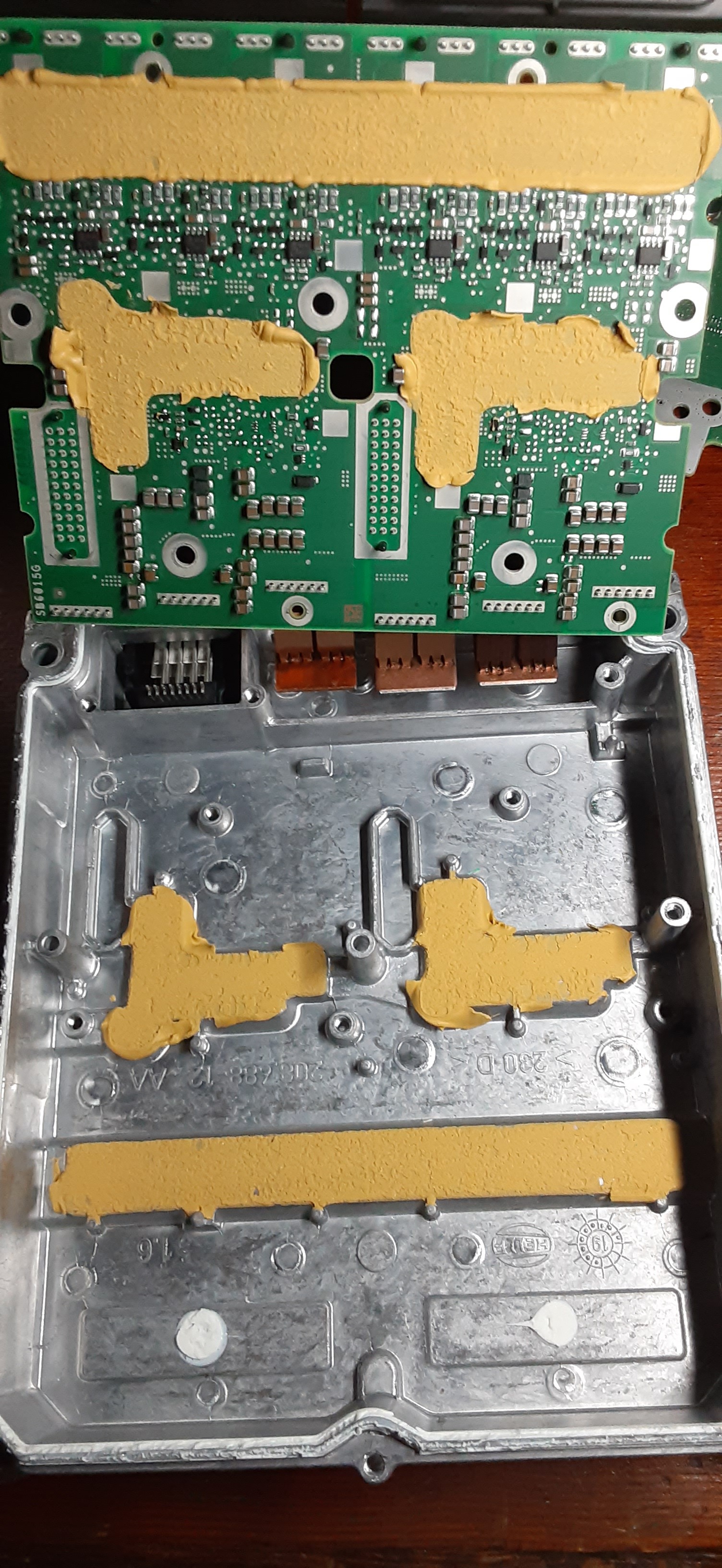 My idea at the moment is to get a dremel and cut the copper bars and hope it just pops out after that. It may be glued down as well with the thermal adhesive and actually that’s seems highly likely.