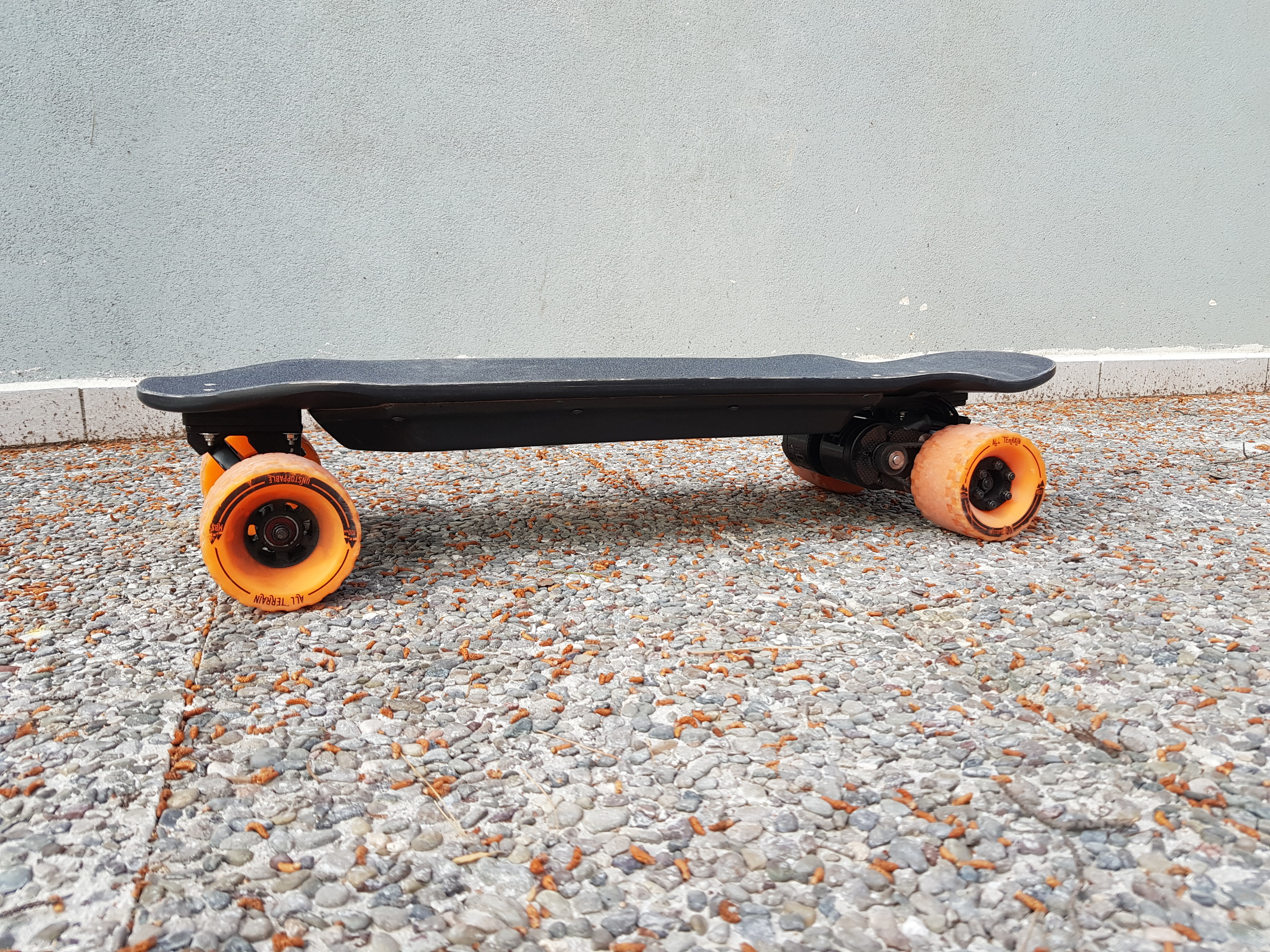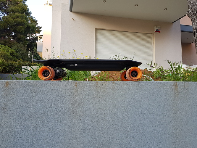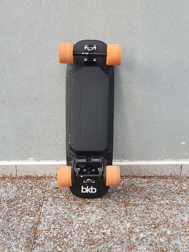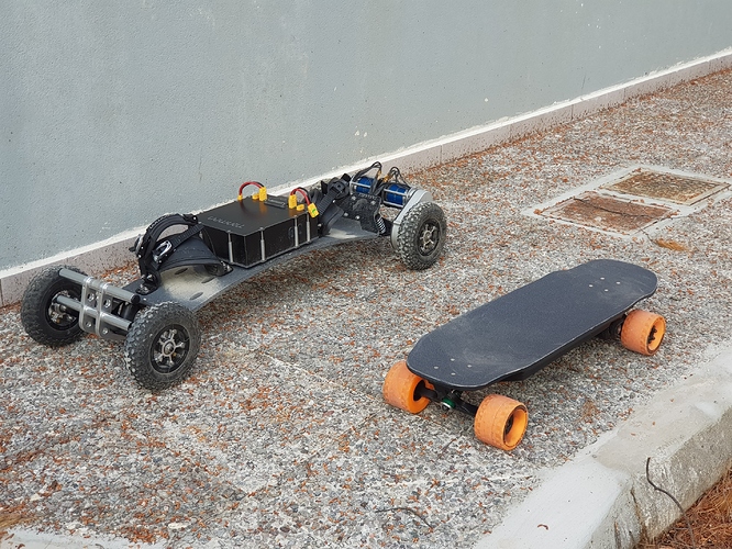 The trucks are my old Caliber II 50 I had on my Evo as well as the motor mounts, sealed Maytech 6355 190kv motors and MBS AT 100mm wheels. Bushings are Riptide barrel krank (93a rear / 90a front) @Alphamail