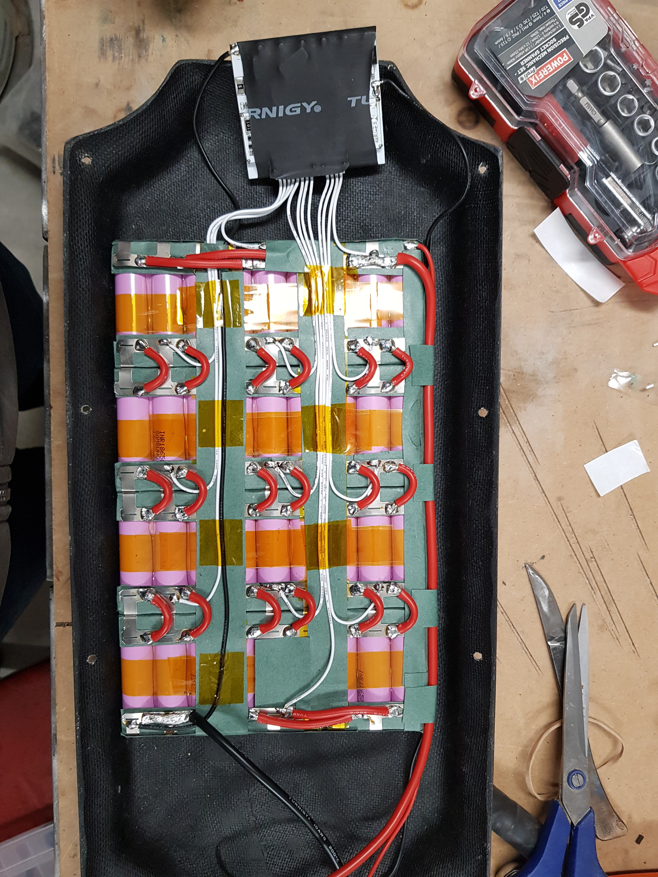 Unfortunately the serial connection cables made the pack too thick to fit in the enclosure without a thick gasket so I had to modify the pack to fit as I wanted to keep the board as slim as possible.