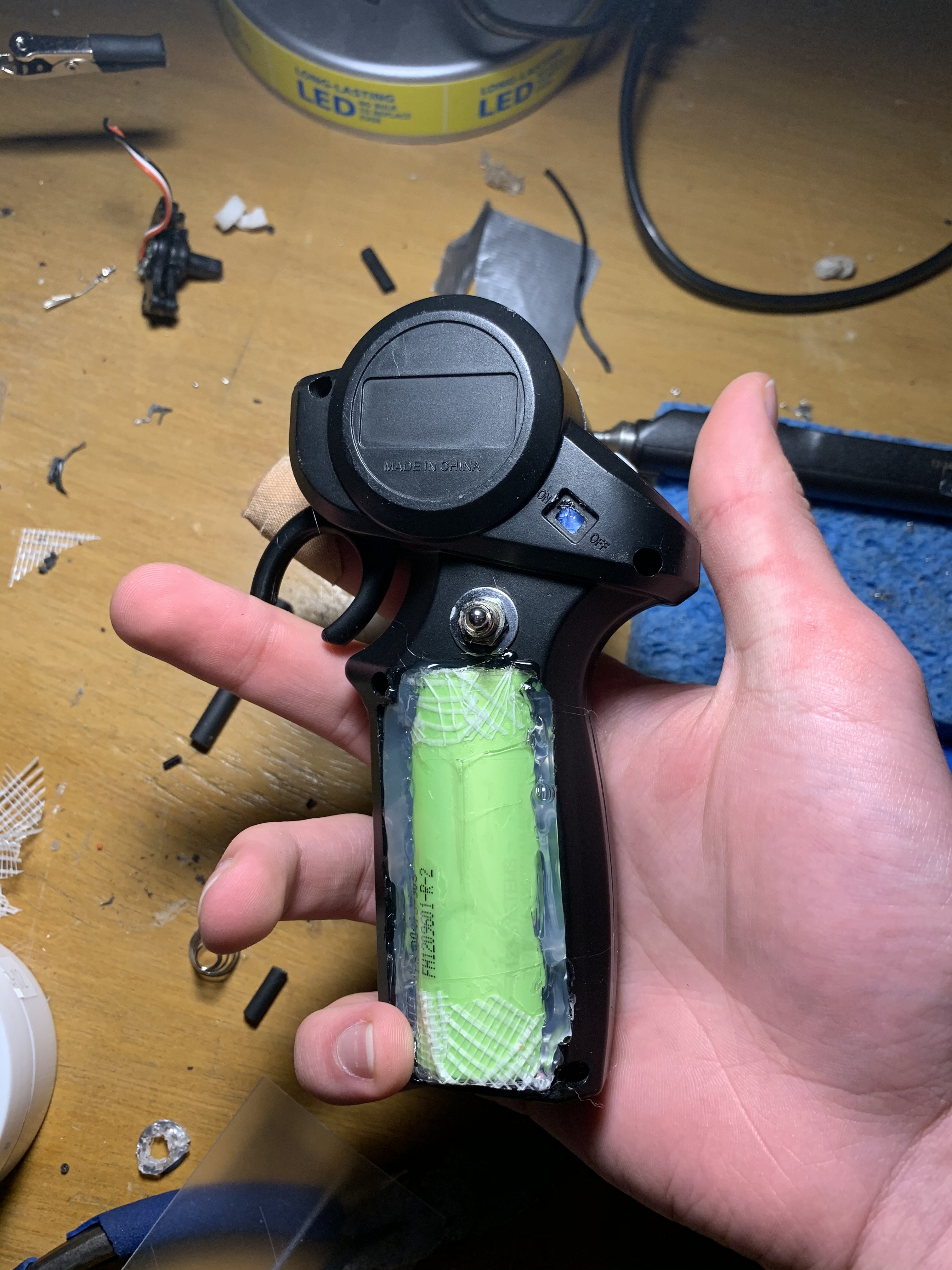 -keep all the electronics, along with the trigger section and control board on one side of the remote. This will save you so much headache trying to bridge connections from both sides.