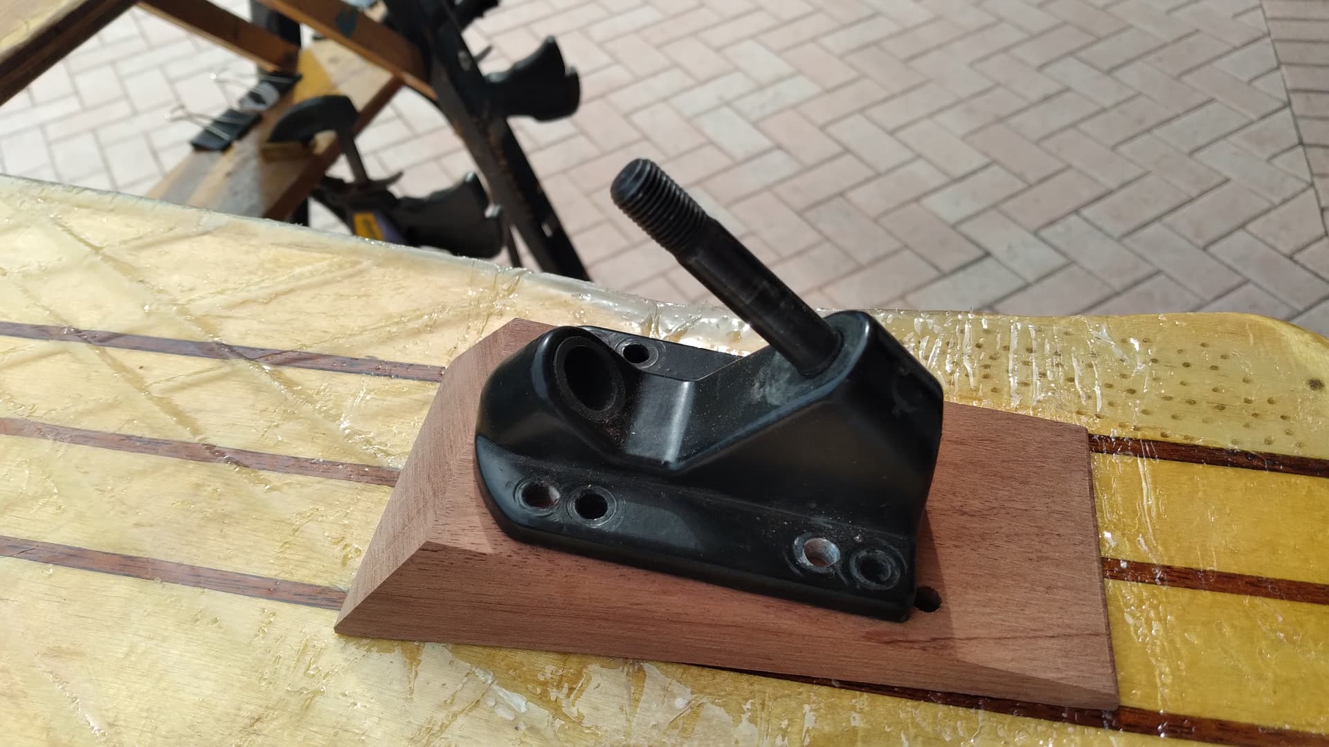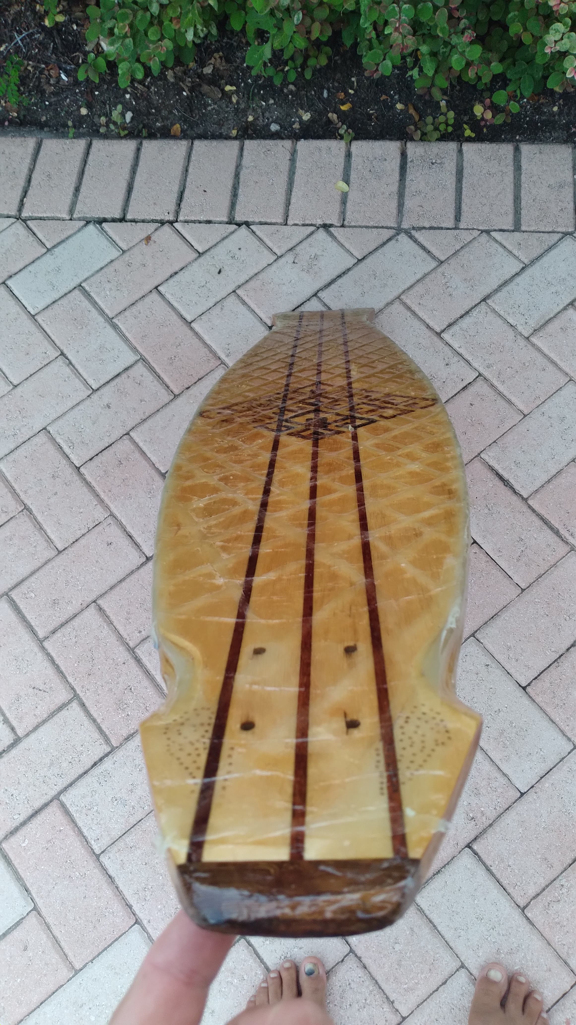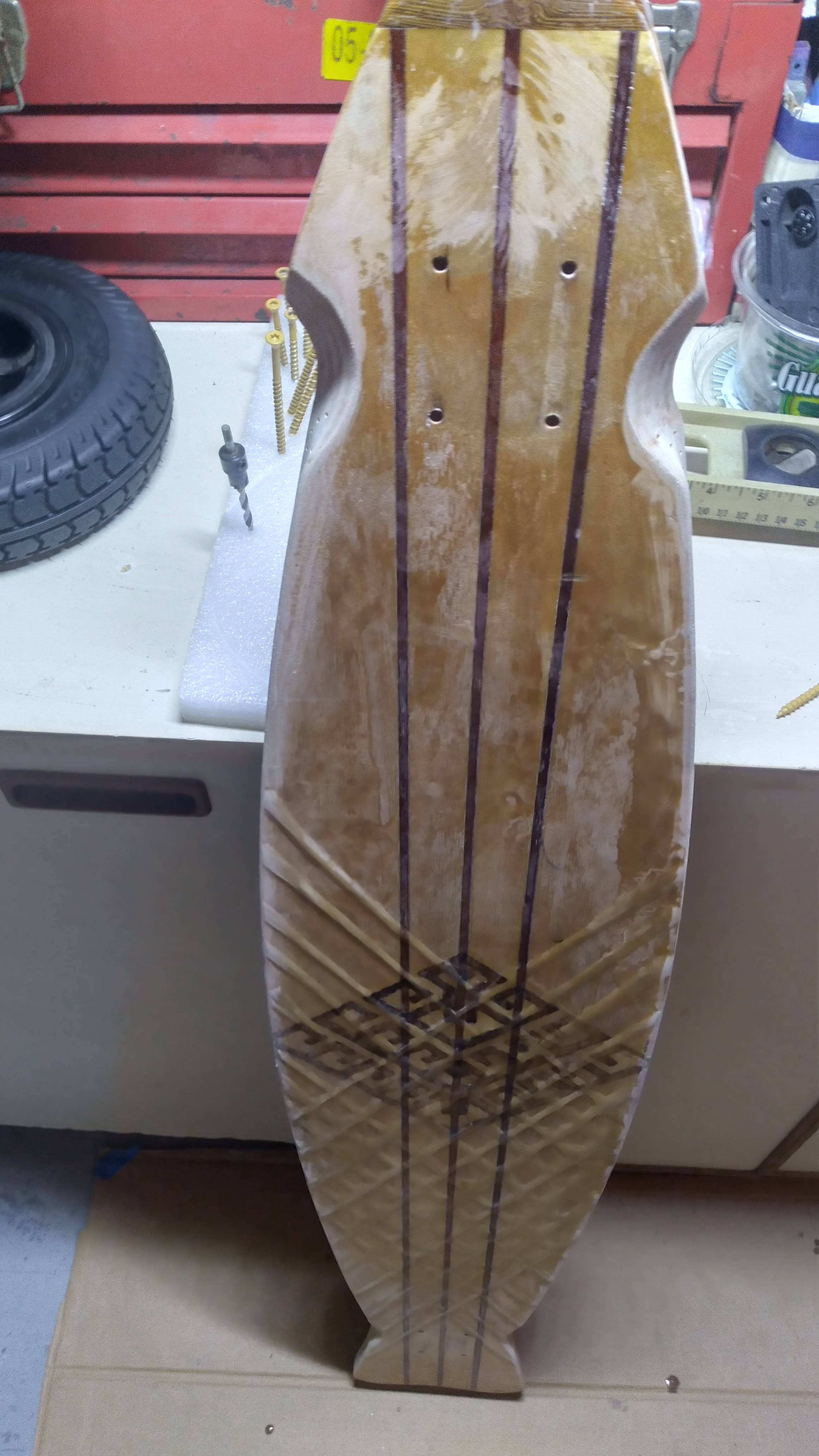 Iād added three mahogany Stringers to the middle, and used biscuts and some water based wood glue I got talked into using against my better instincts to join it together. After riding it for a bit the glue lines started to fail along the mahogany, and I made another deck from the baltic birch without stringers, and this deck sat unused for many years.