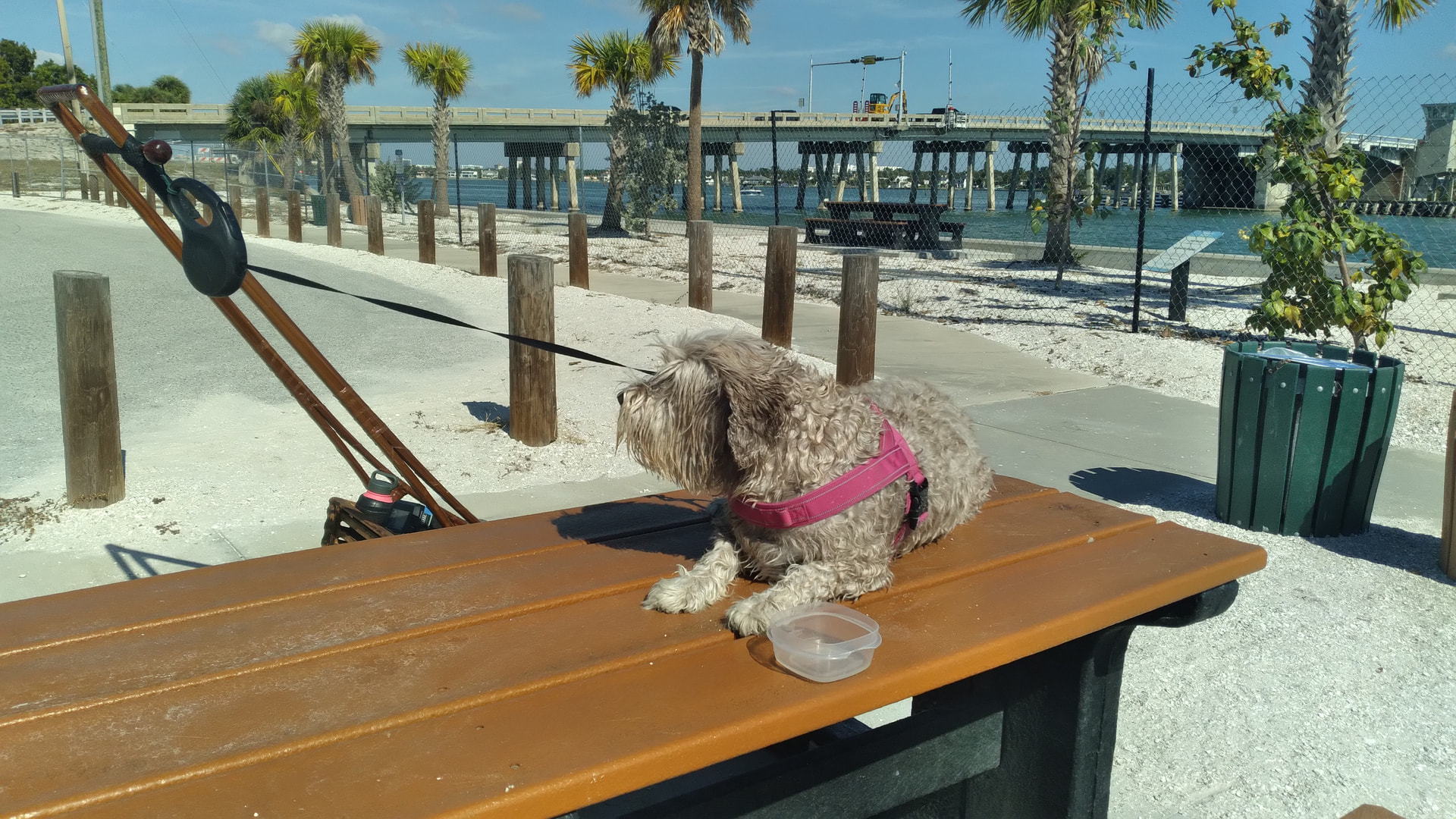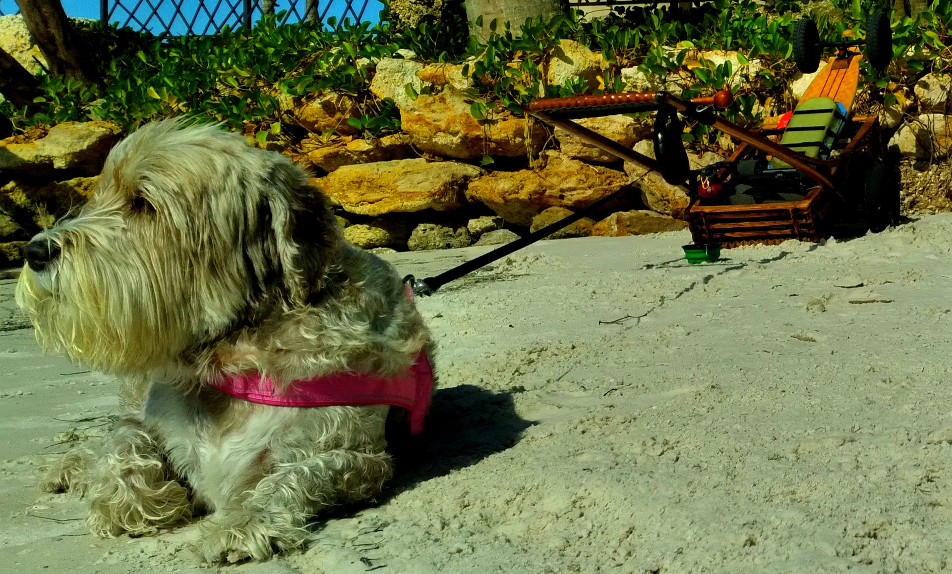 Beach run on the Guppy today, with the sweet goofball, and Portable Charger in her Chariot.