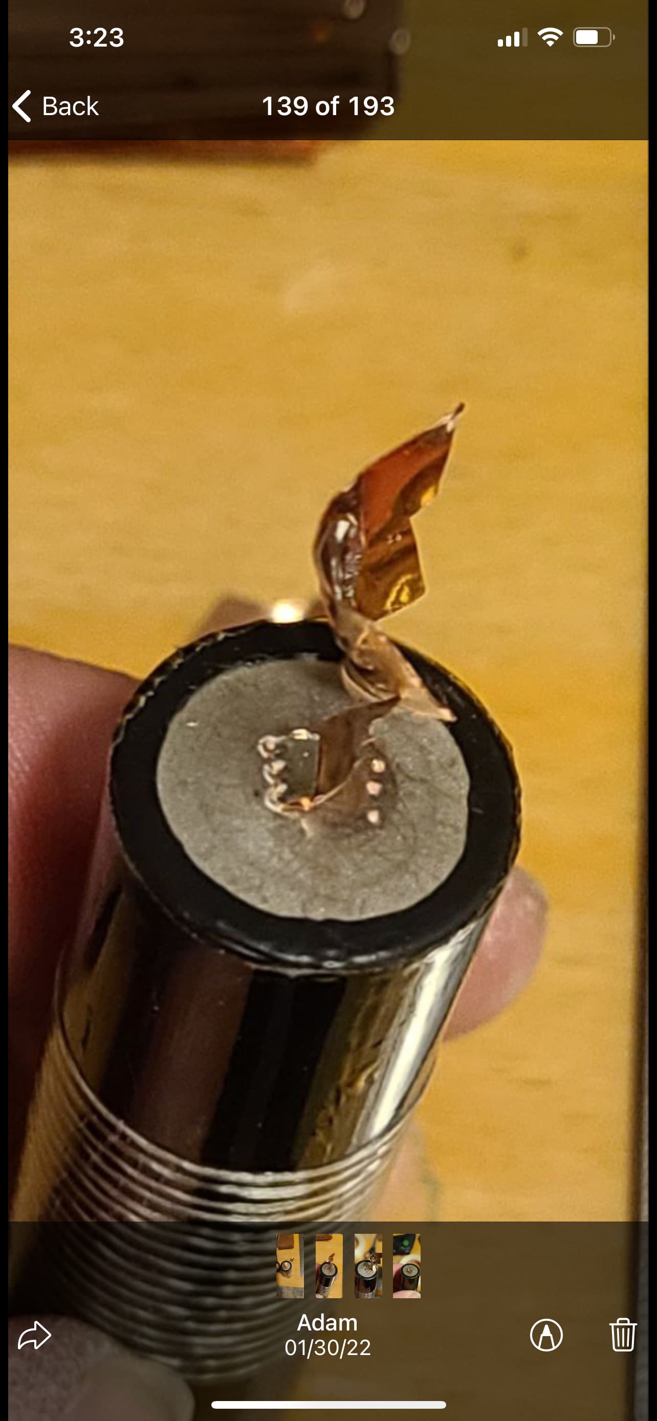 A friend of mine, who works with cell manufacturers and pack assemblers, has told me that everyone says the same thing…they avoid the center of the negative terminal “just because”. Spot-welding to that place can never be a good thing, and could be a bad thing, so they just don’t do it. They have no need to, and no interest in, checking with the different cell manufacturers for the technical details.