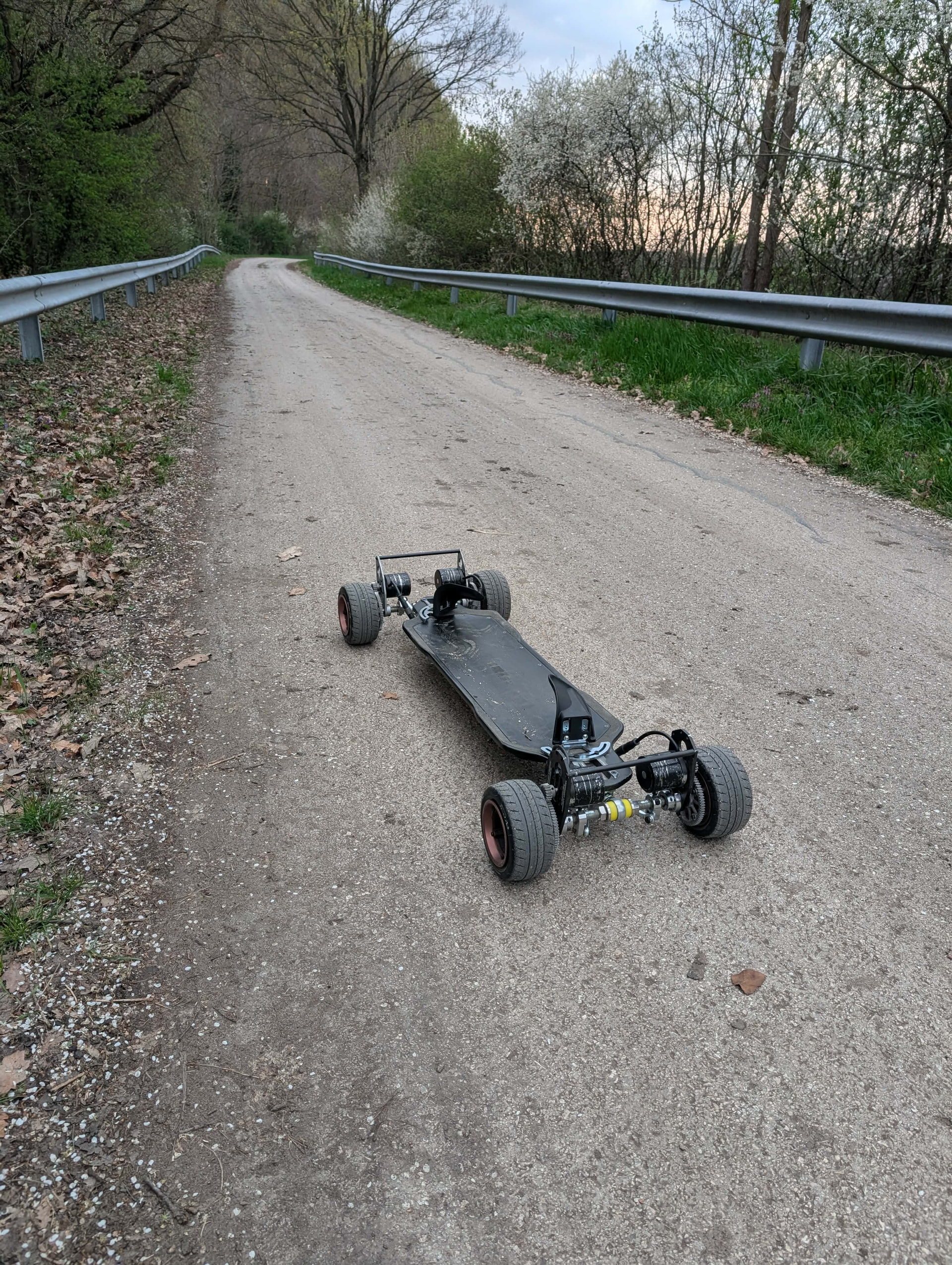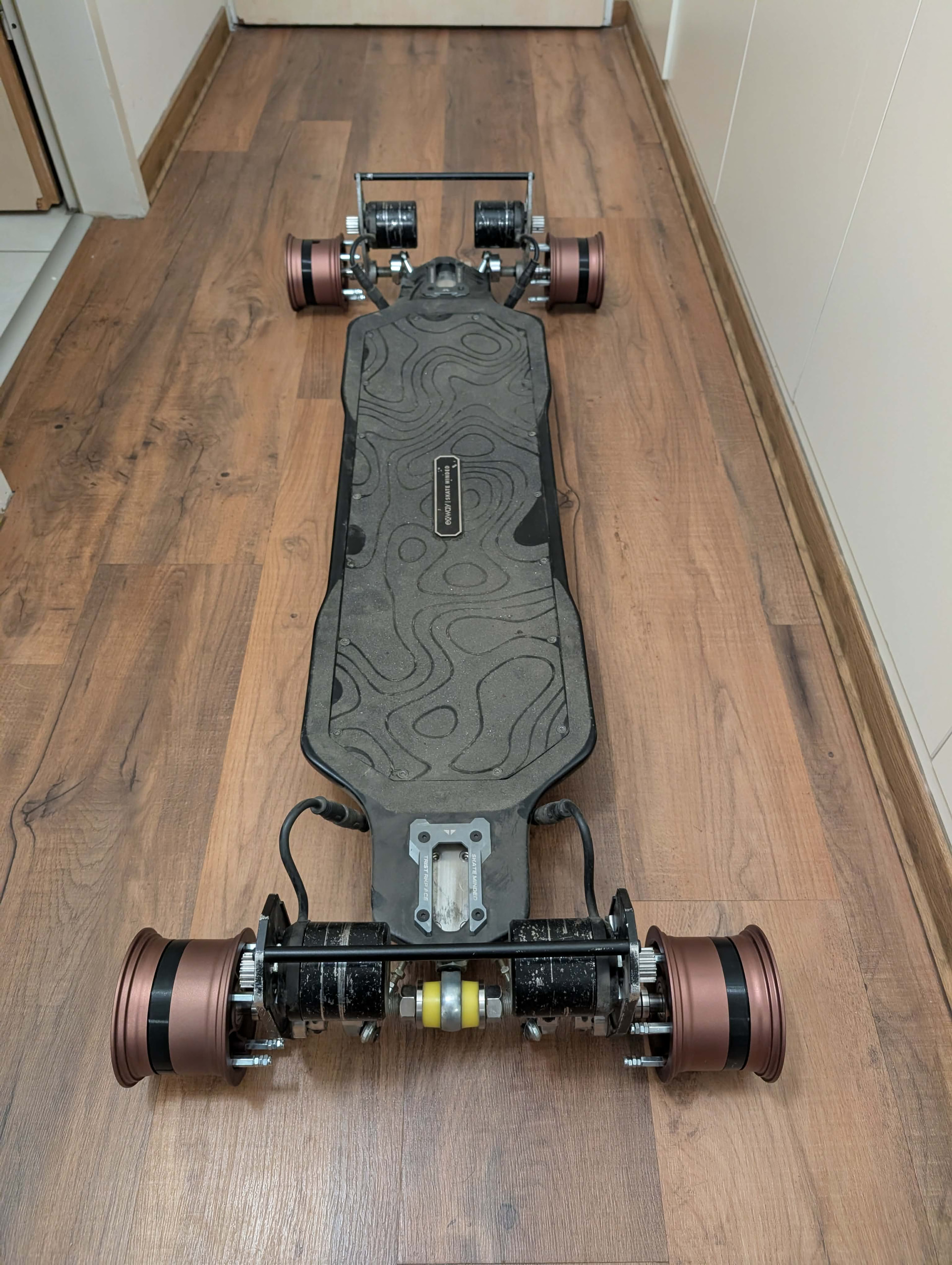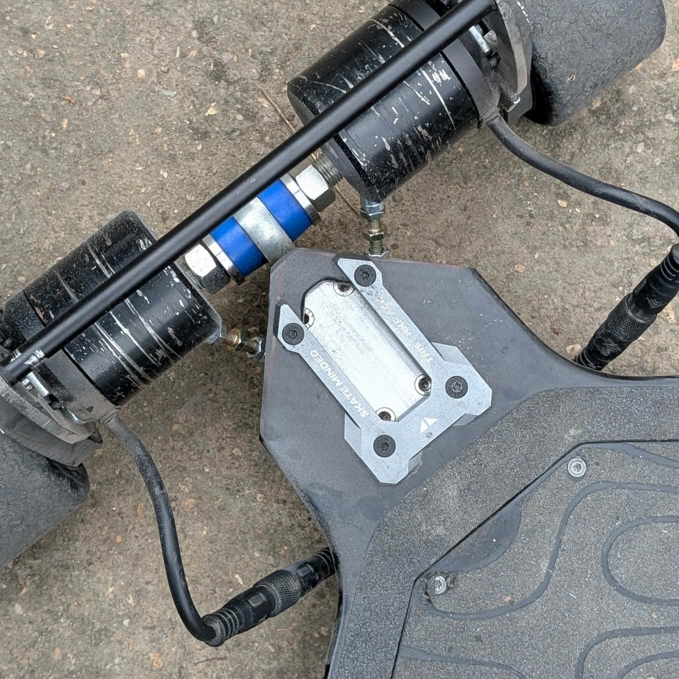My first goal was to get a realy good truck. I considered the Duality, but because of the flat deck and clearance, I ended up going with a 3-link setup. Big thanks to @Esk8Cave for the Idea adapters. The carbon Atlas deck isn’t very compatible with the SRB 3-link + Idea adapter, so I had to make some modifications to make everything fit.