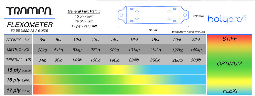 When I bought the 16ply HolyPro and the 14ply Carver deck I wanted about the same flex and was referring to this charts