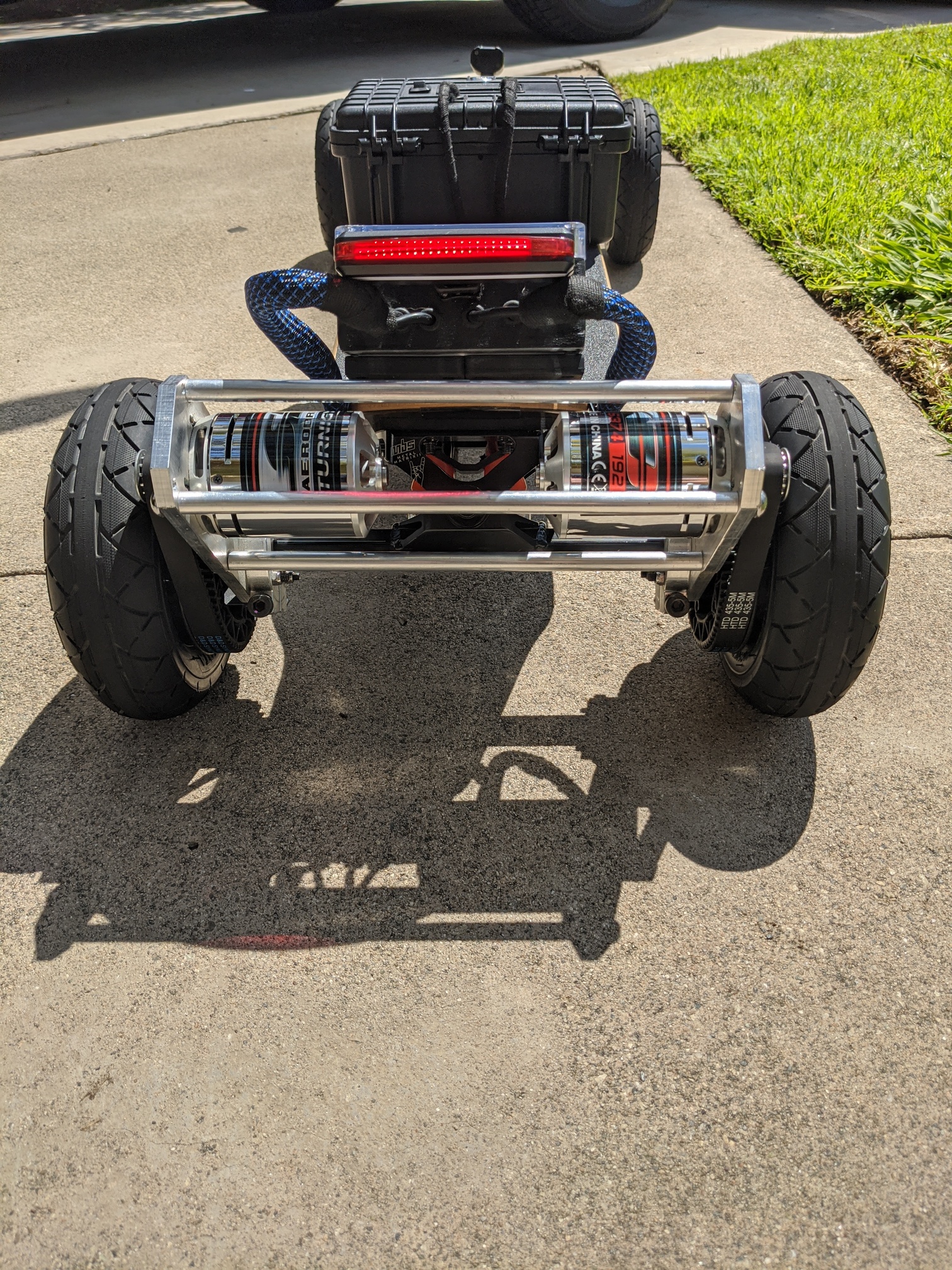 This s my first build. Initially, I wanted an off-road/mtb. I was searching for an enclosure for my lipos and esc. I actually did use the one from Harbor Freight, that Mobutusan posted a link to. All in all, it’s a great box. And you can’t beat the price. Originally, I had 2 lipo (10s 1p, without BMS) packs, and the esc inside. However, I was only getting a range about 10 miles. I added 2 more packs to double my range, making it 10s 2p. Also, I want to sell this thing, and wanted to make it easy to charge for whomever buys it. So I added a charge only BMS, which can be unplugged. I set the battery discharge limit through the Vesc software. However, I ran out of room. So I moved the esc to the back tail, and put it into a junction box, and painted it black… something I got off of Amazon. It looks okay, I guess…I was going for function over form. But I think I would have made an enclosure for the bottom, in hindsight. Also, I decided that the bindings were not for me, and I prefer riding on paved surfaces. The bindings were also made form an old weathered leather belt, and my first attempt at tooling leather My next build will definitely have an enclosure underneath. The box is the easy way to go, for sure. This build has less than 20 miles on it (testing, and getting things dialed in.) And I have some brand new tires to put on it.