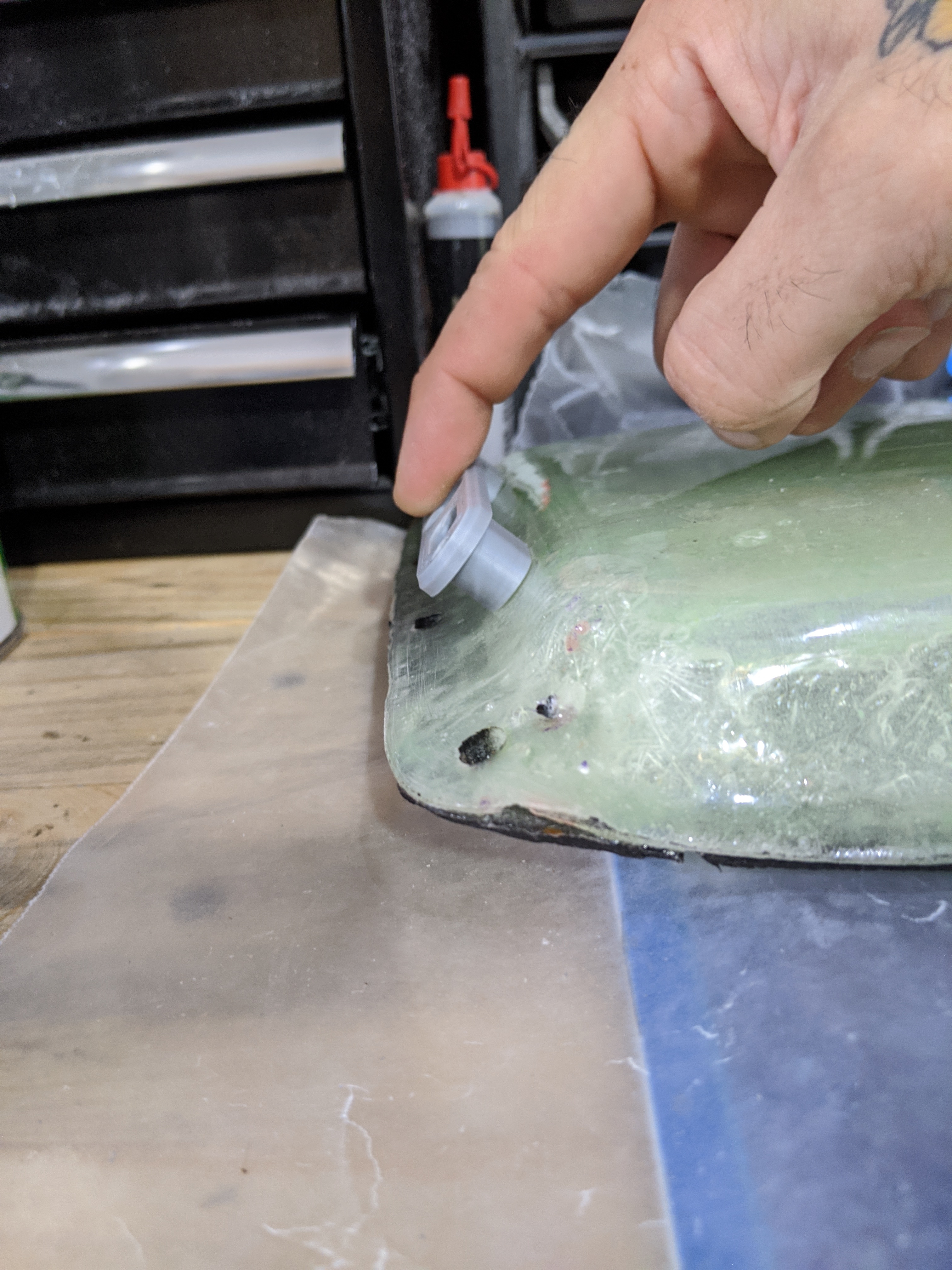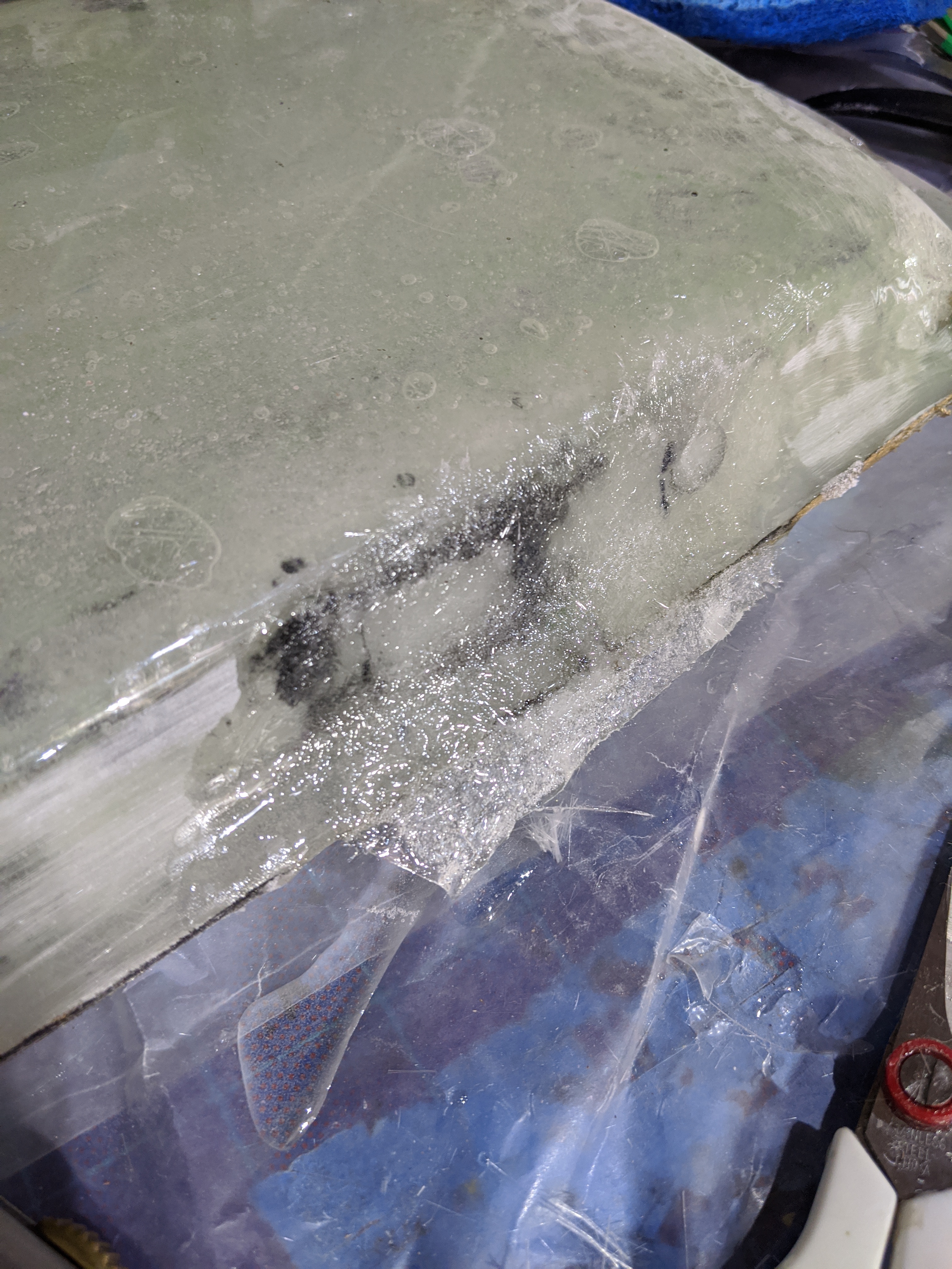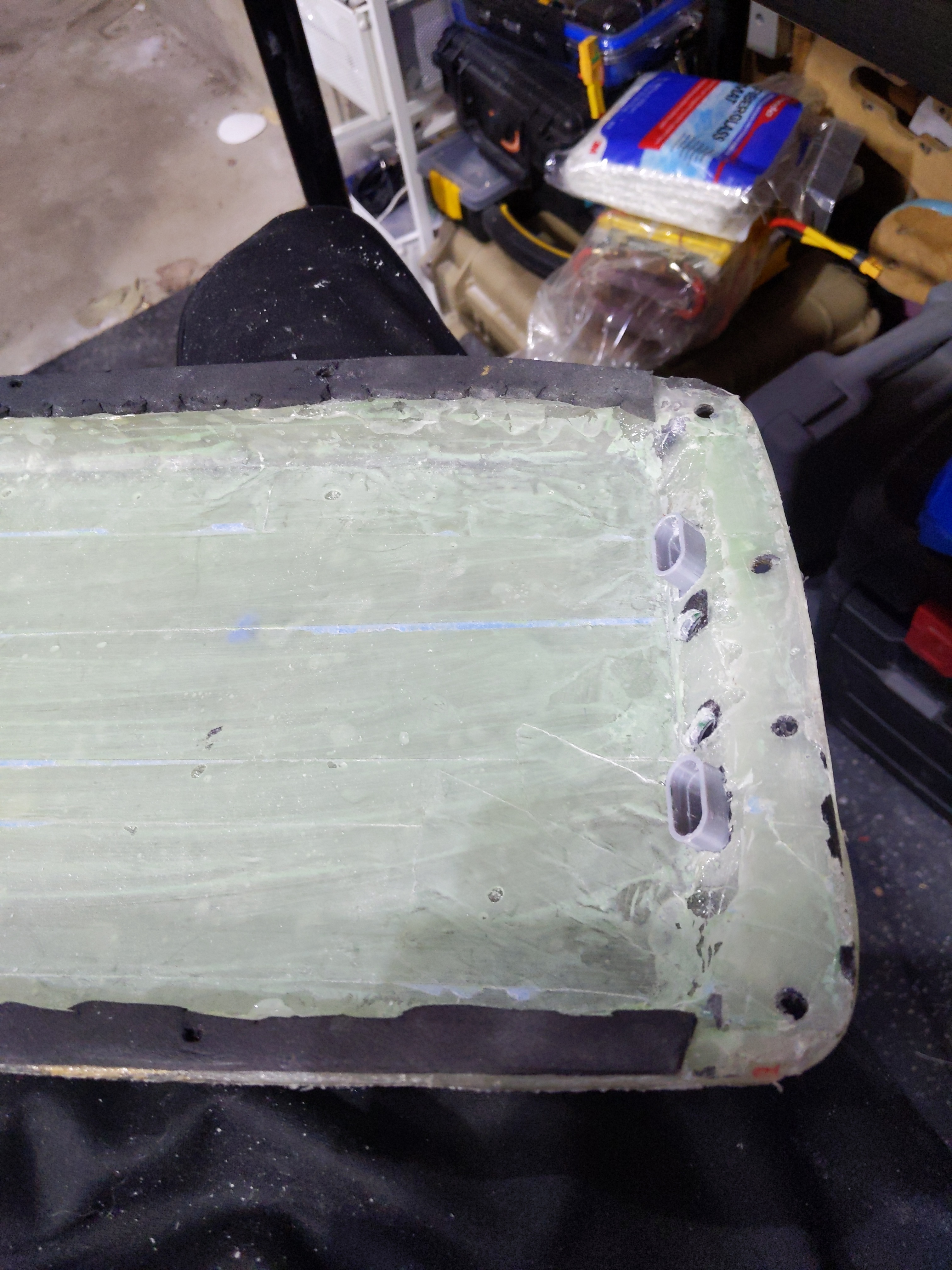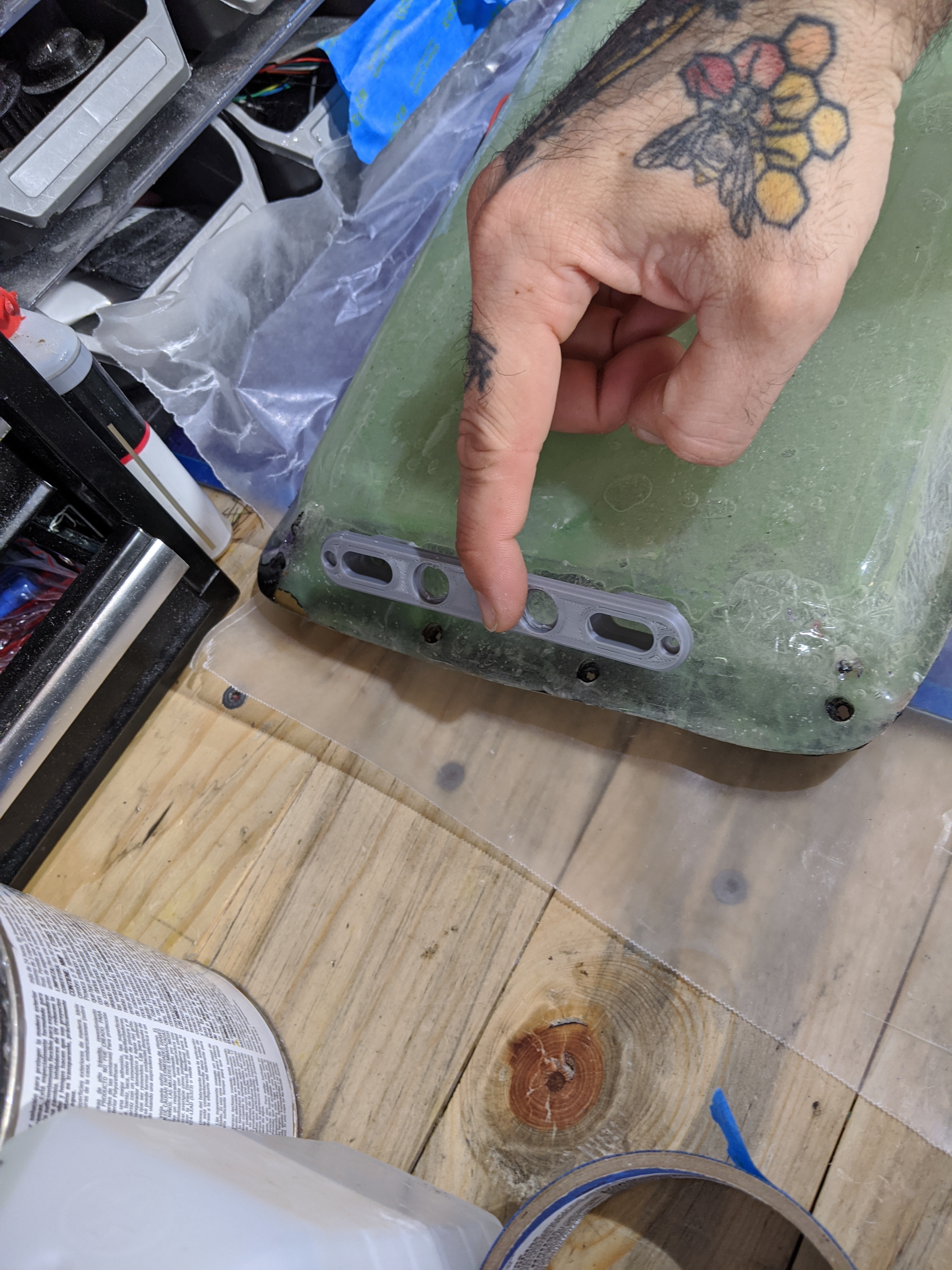 lol don’t worry I’m almost there. Letting the last patch dry and then will sand and do a thin clear coat on those sections. The graphic peeled right off because it was plastidip and spar urethane. And it’s super easy to redo that. I essentially just patched the inside, let it dry, patched the outside, letting dry, then clear coat the areas. I’m sure I’ll hit some road block as soon as I’m trying to make cutouts on the other side of the enclosure because it’s much more steeped than the other one.