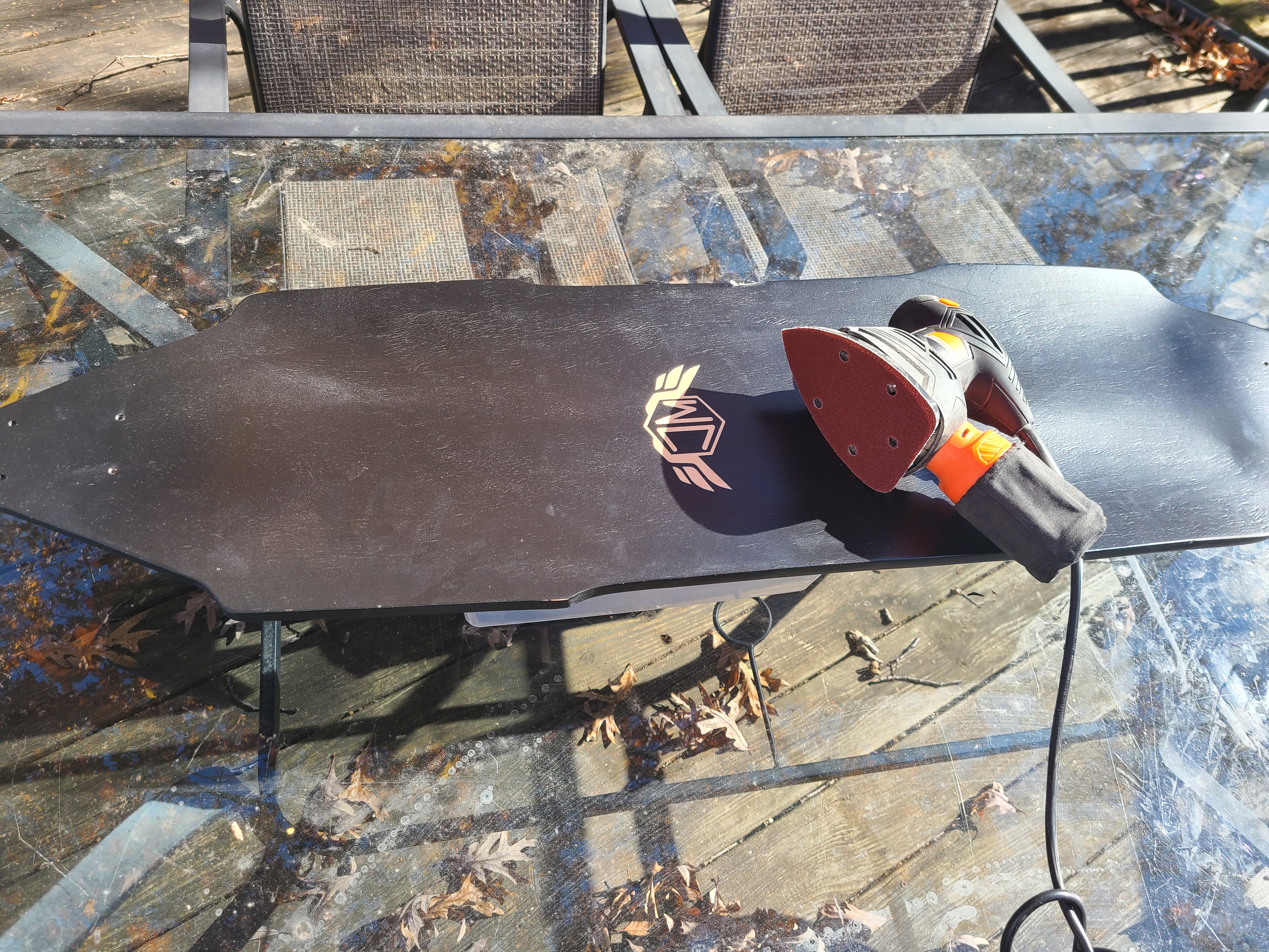 The deck came with the sides black and I wanted them showing. So I sanded it.