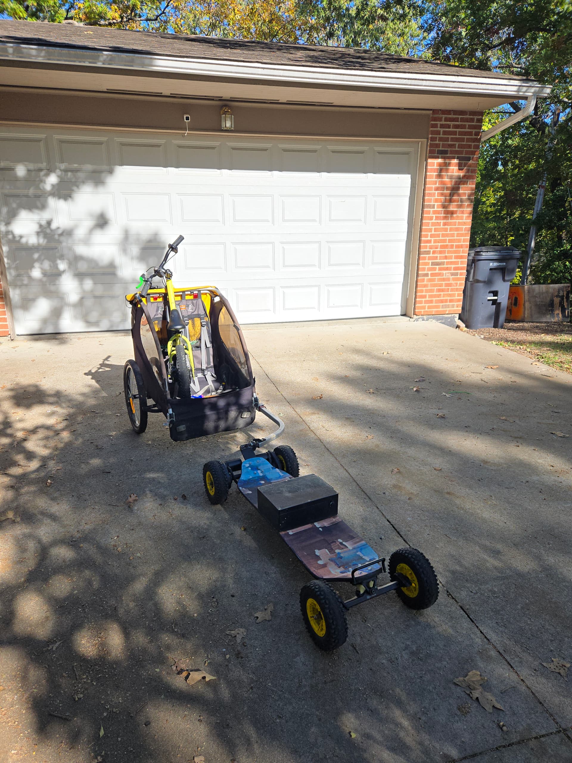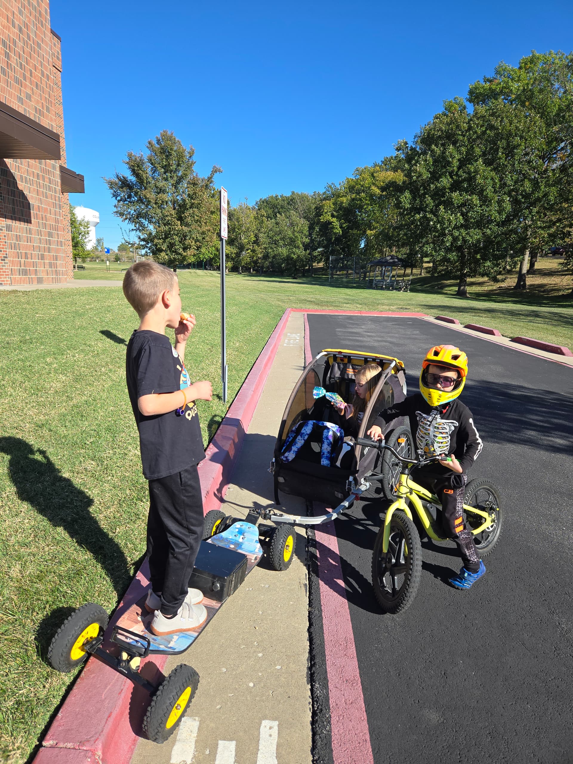 So I pack the little dudes bike on the trailer haul it to the school and he rides it back along side us.