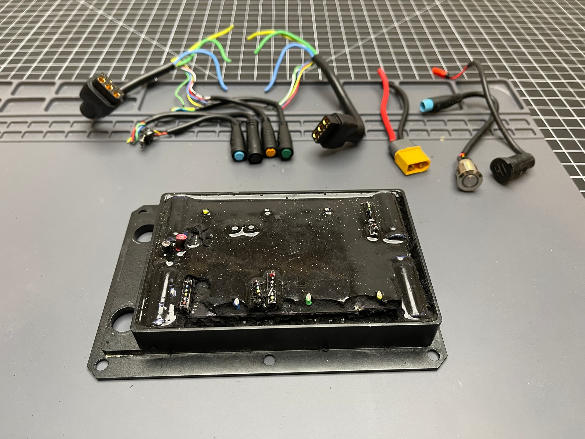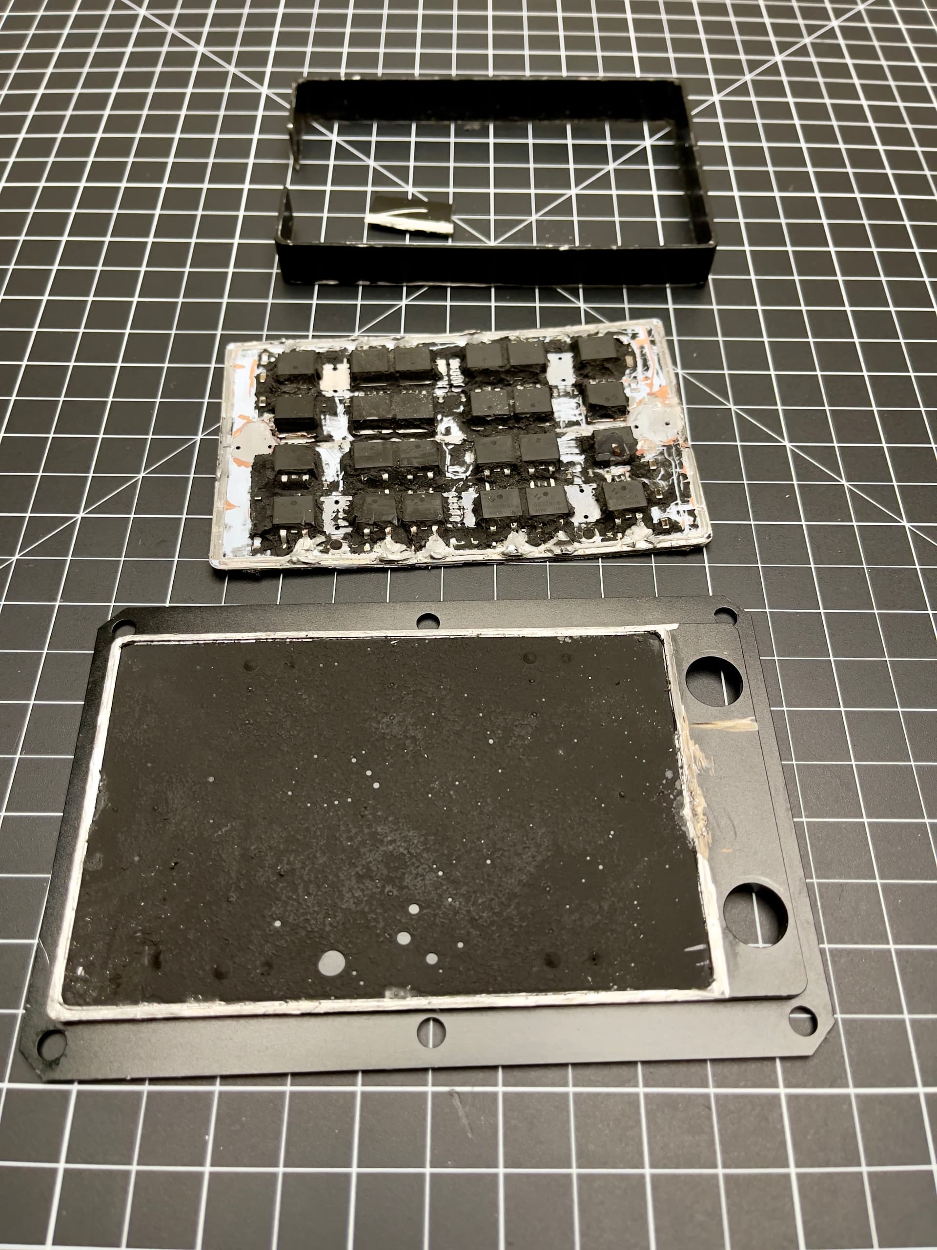 Got the walls off. Iâm pretty sure itâs just potting compound thatâs holding it on. Itâs really soft