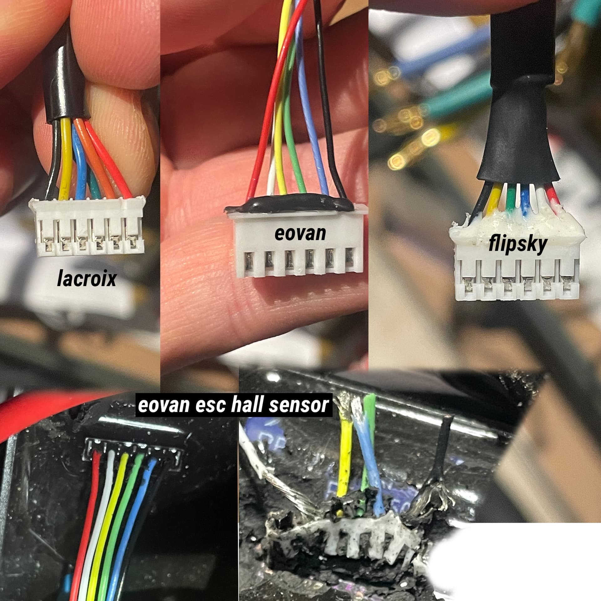 However, if you re-wire the sensor cables you can use the hall sensors till they fail one day due to cable perforation or whatever reason. Halls are only used to get you rolling. If they snap, your board will not start from zero mph very nicely and cogg a bit. Once you gain some speed, the halls are not used and shut down for rotor tracking.